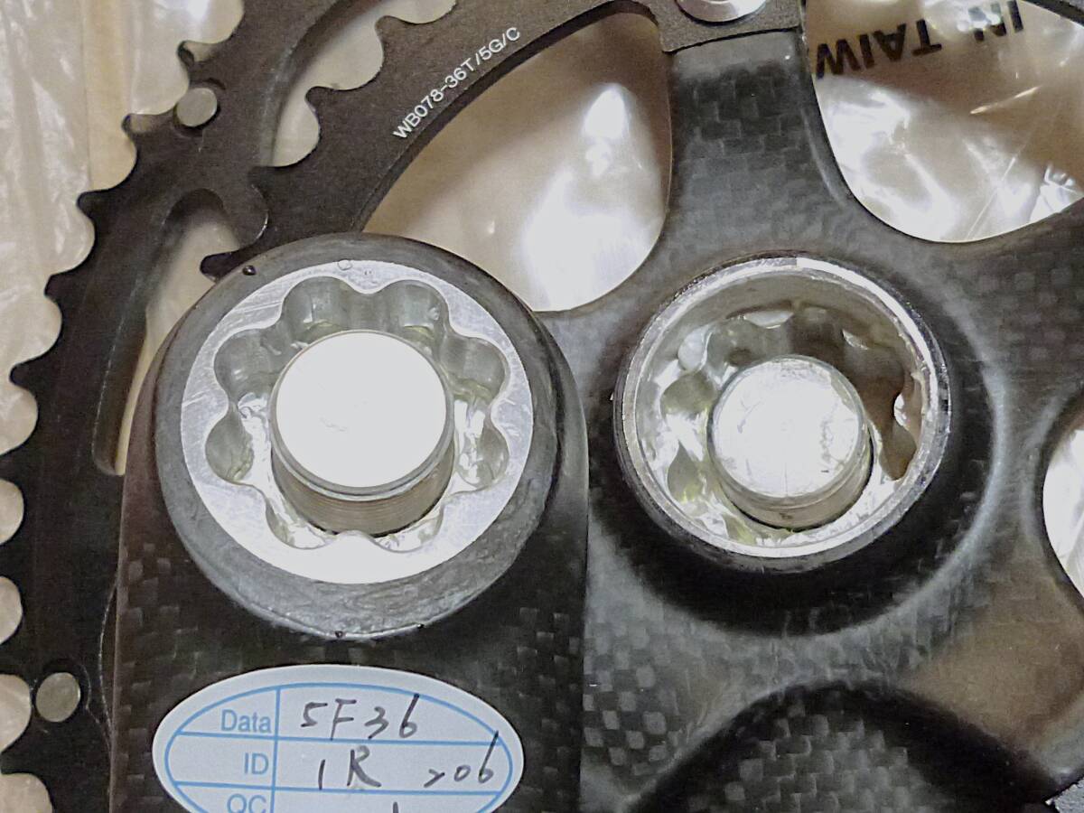 当方購入の物では無いので主観での説明になりますが、チェーンリングや軸取り付け部を見ても未使用だと思います。