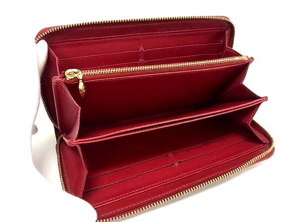 1円 LOUIS VUITTON ルイヴィトン M91732 モノグラムヴェルニ ジッピーウォレット ラウンドファスナー 長財布 小銭入れ レッド系 FS5281