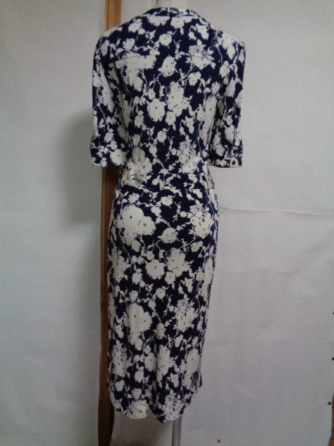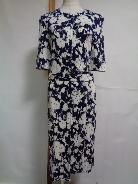 トリーバーチ*XS*柄ワンピース*オールシーズン*春夏秋冬*(株)ルック*ネイビー*紺*袖付きワンピース*洋服*TORY BURCH