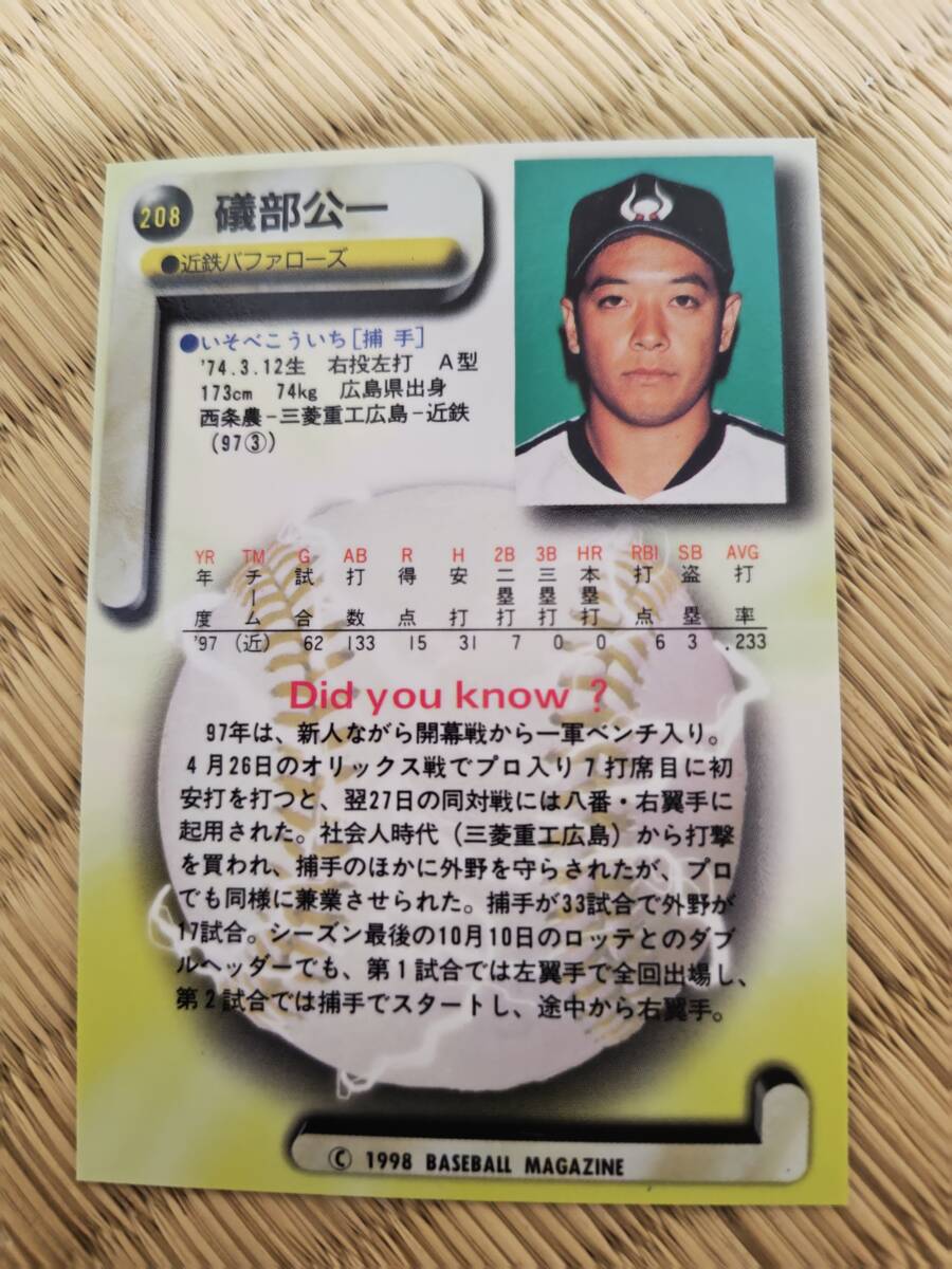 BBM98大阪近鉄バファローズの礒部公一選手のカードです。カードNo.208