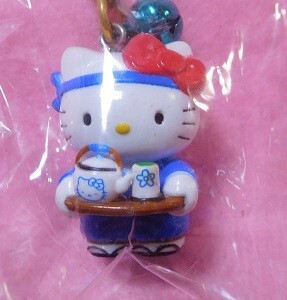 ☆レア☆2001☆和食れすとらん限定 ウェイトレスバージョン ハローキティ根付け☆ストラップ☆