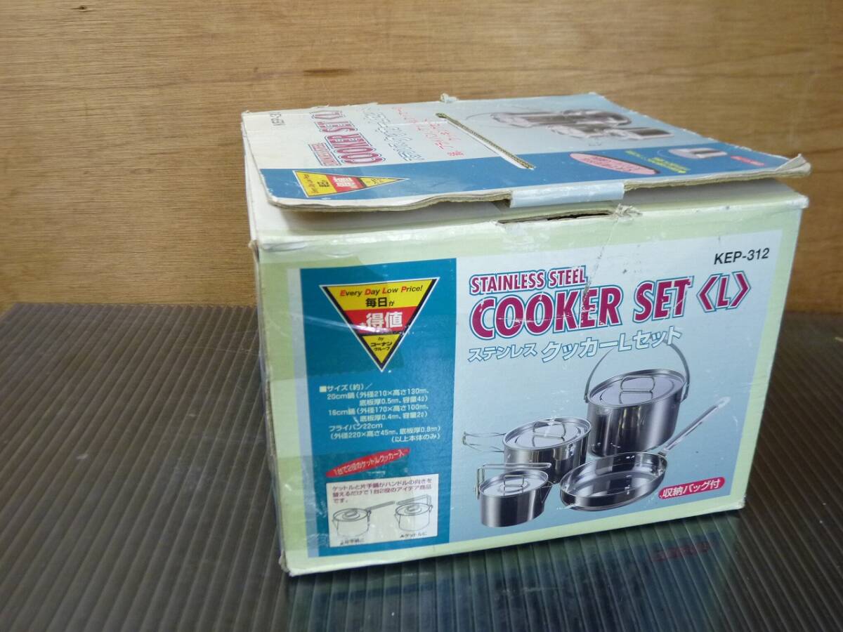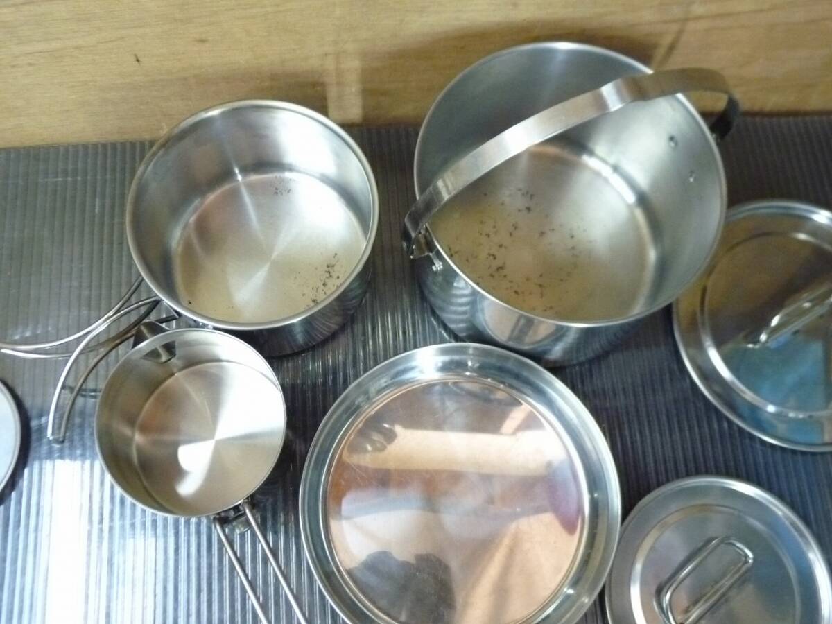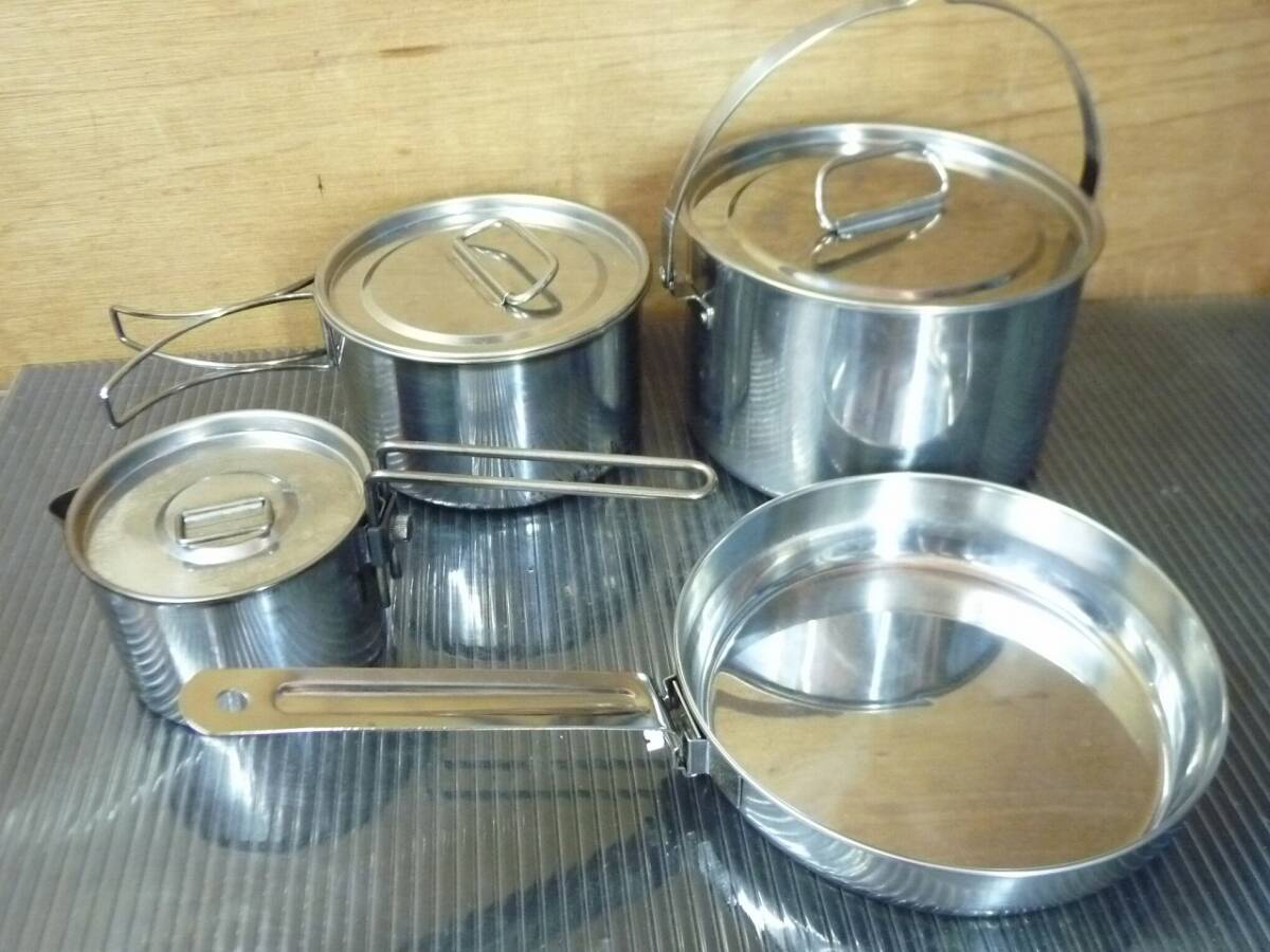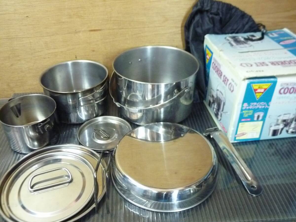 アウトドア クッカー 丸型 8点 セット KEP=312  ステンレス 鍋 フライパン 皿 中古!!  です。