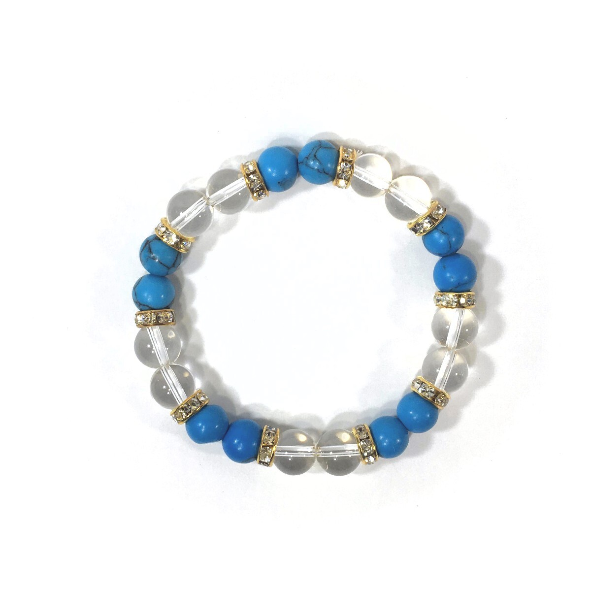 ターコイズ&水晶 パワーストーン ブレスレット 天然石ブレス ゴールド 8mm /開運 浄化 4月 誕生石 クリスタル レディース 通販 #2