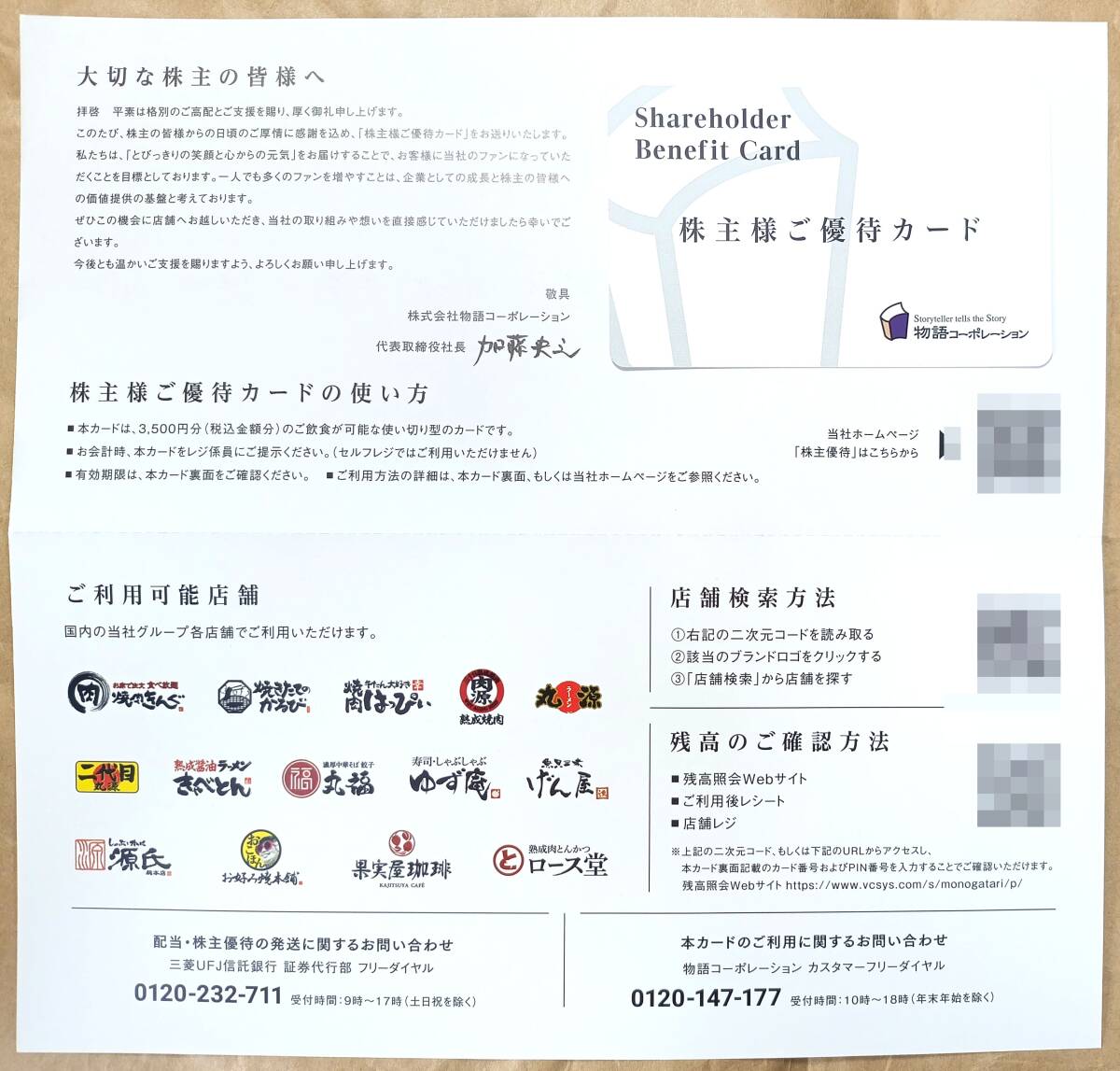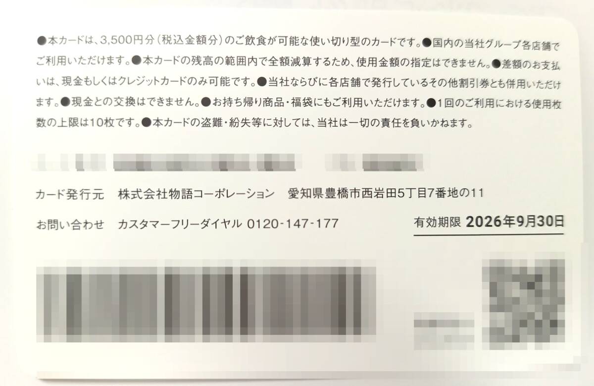 物語コーポレーション■株主様ご優待券カード■3500円分■2026年9月30日<送料無料>