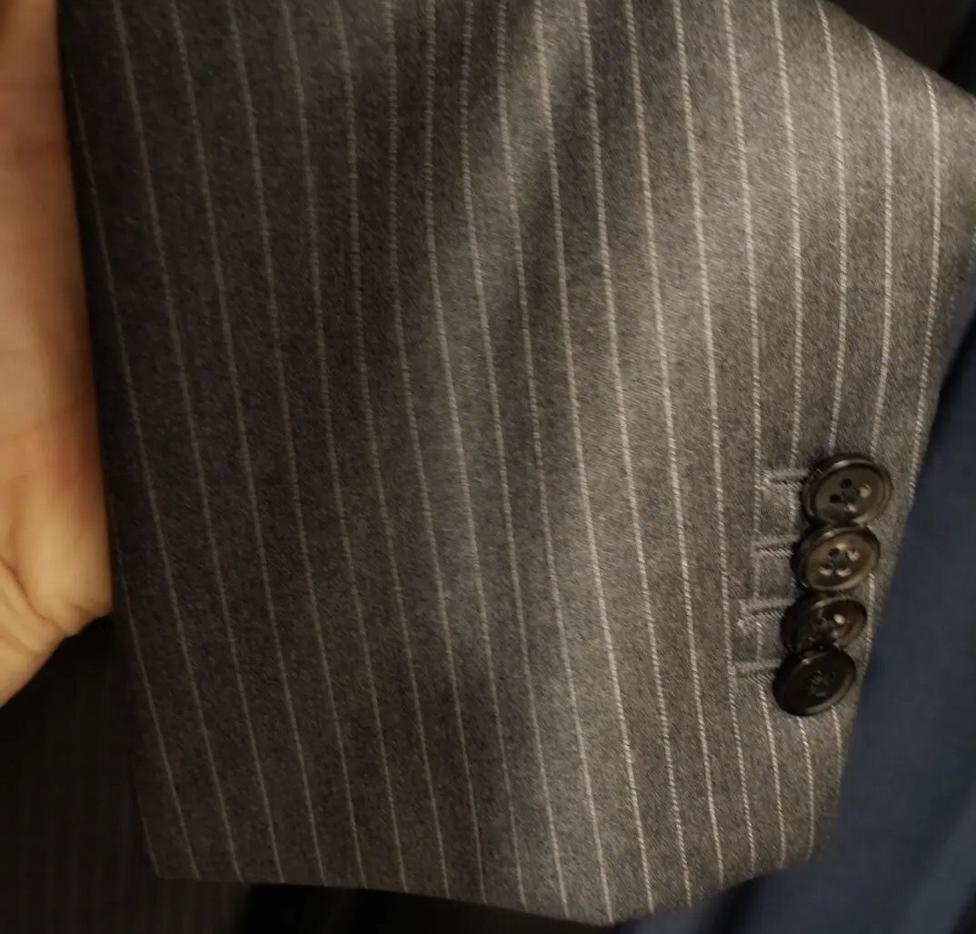 最高級生地REDA生地を使用したグレーのストライプスー