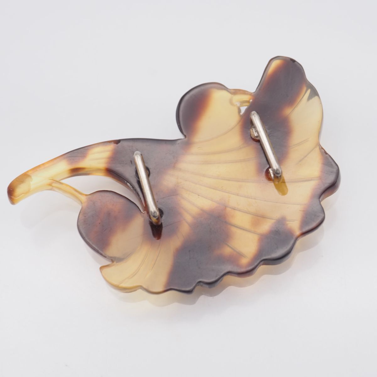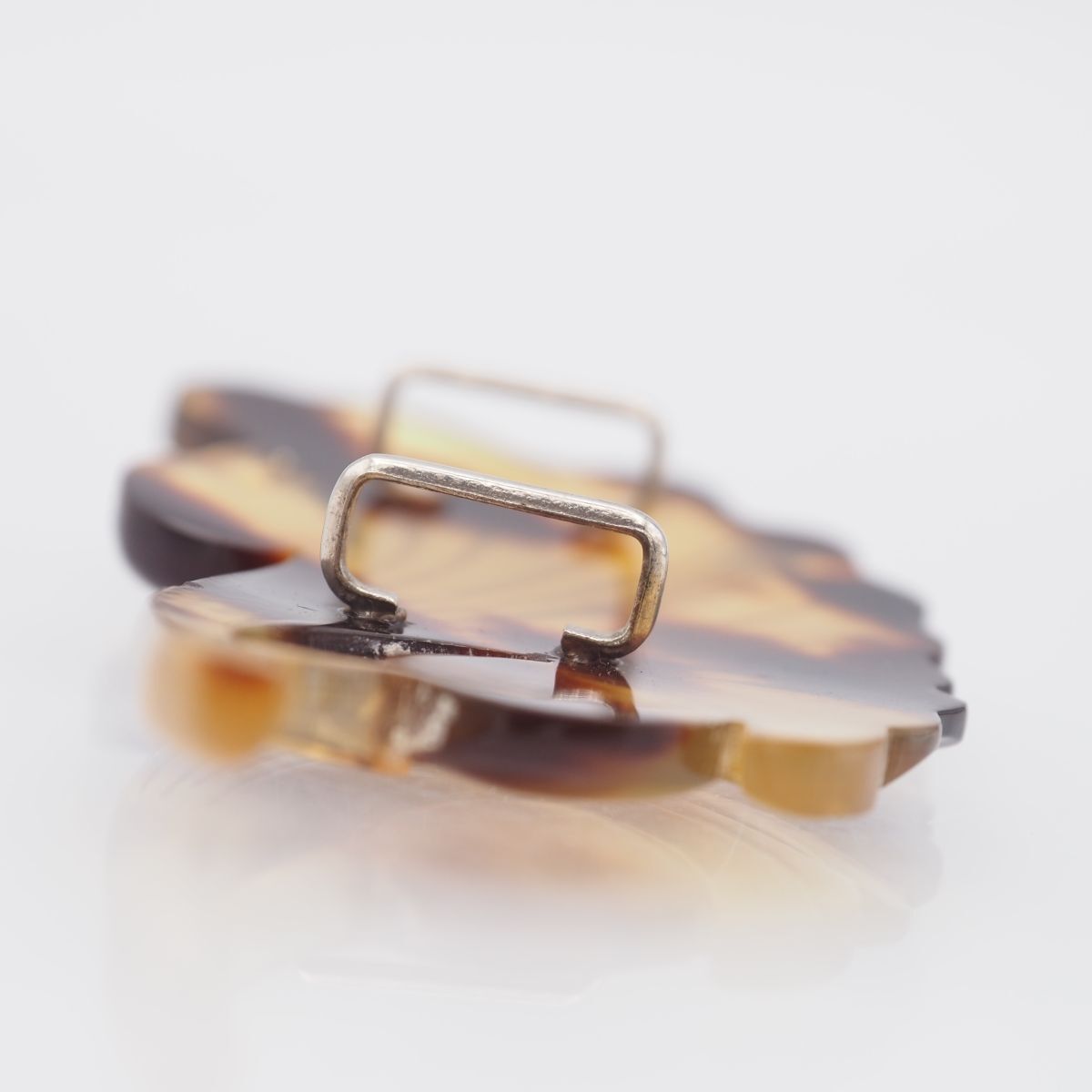F636 鼈甲 べっ甲 帯留め リーフ デザイン シルバー 和装小物