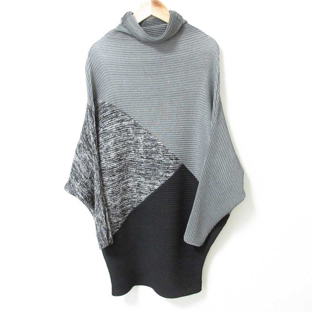 商品名:SPECCHIO スペッチオ シャトルプリーツ カラーブロック チュニック ハイネック ドルマン カットソー サイズ40 グレー ブラック