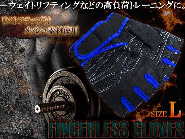 フィンガーレスグローブ ウエイトトレーニング 指なし トレーニンググローブ Lサイズ ブルー 青 ジム ウェイトトレーニング 指だし 手袋