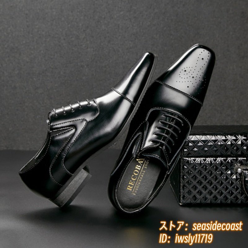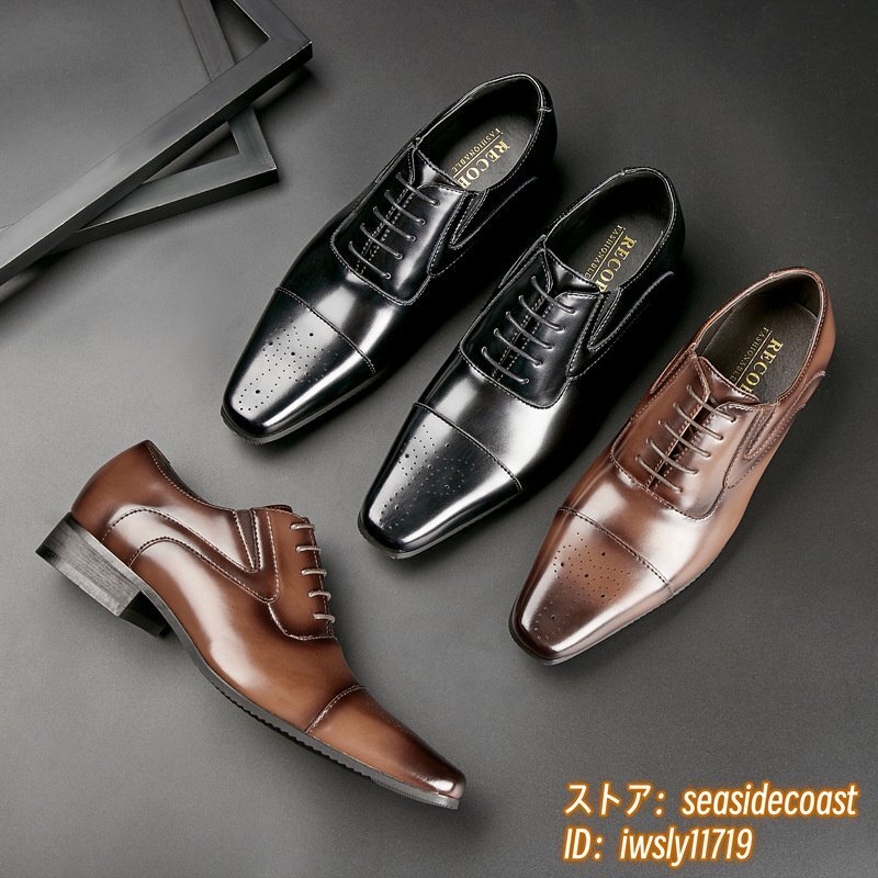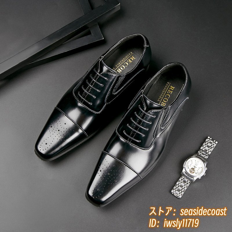 高級品◆ビジネスシューズ メンズ 牛革 レザーシューズ 通気性 職人手作り 彫り 革靴 通勤 就職 紳士靴 新品 フォーマル ブラック 24.5cm