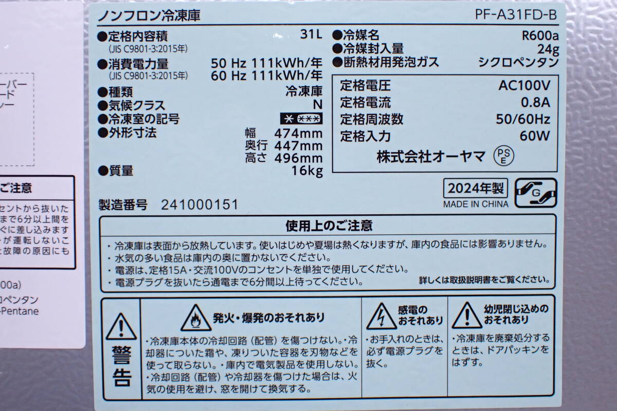 未使用品 アイリスオーヤマ 冷凍庫 室内・家庭用 PF-A31FD 2024年製 問題なく稼働します。 |
