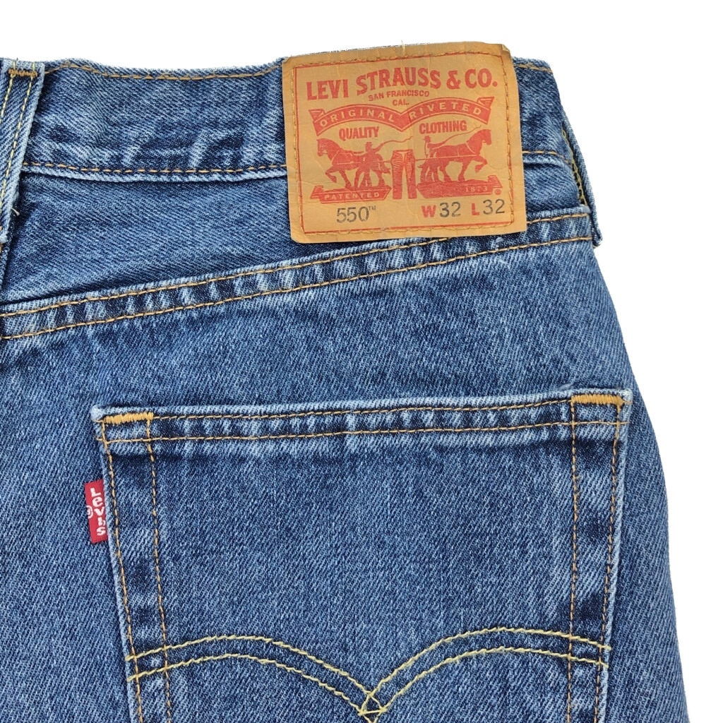 [商品管理番号] R9485 [ブランド] Levi's/リーバイス [サイズ] W32 L32 [実寸サイズ] ウエスト:約84cm 股上:約29cm 股下:約81cm わたり幅:約31cm 裾幅:約21cm [主な素材] 表地 : コットン [色] ブルー [仕様] 550 [状態] キズ:裾、股、ヒップ 特記事項:色褪せ、タグ欠損 | |||