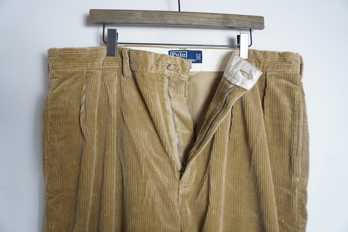 90s POLO RALPH LAUREN ポロ ラルフローレン ANDREW アンドリュー 2タック 太畝 コーデュロイ パンツ ベージュ ビンテージです。