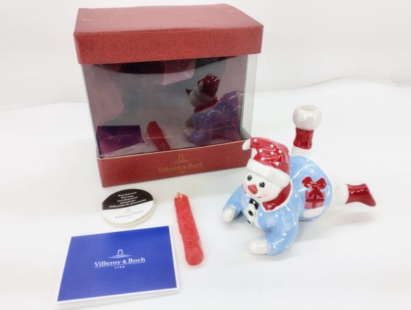 サ/ Villeroy&Boch ビレロイボッホ キャンドルホルダー スノーマン クリスマス 箱付き /HY-1182
