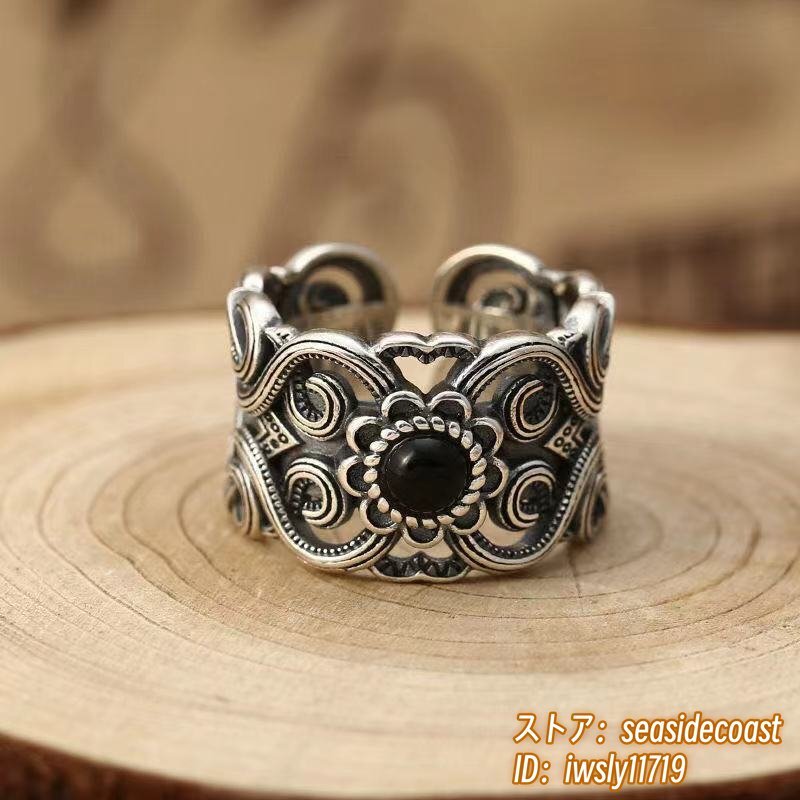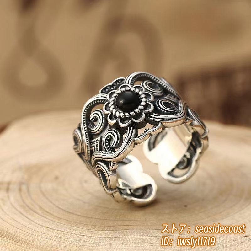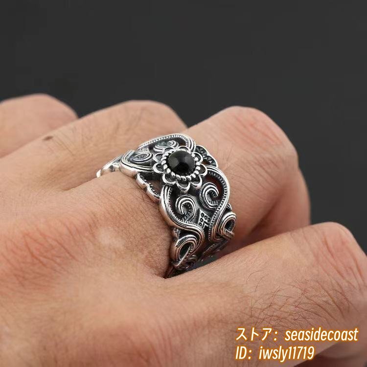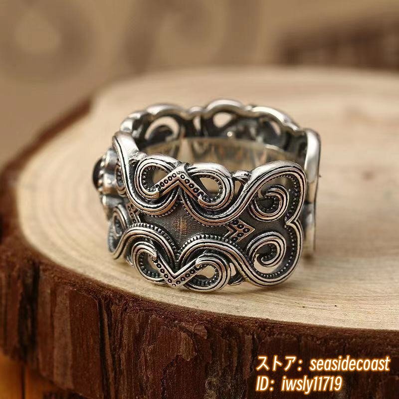 1円~◆新品 シルバー925 リング ドクロ 指輪 アクセサリー 花柄 幸福 幸せ ファッション 男女兼用 メンズ レディース サイズ調整可
