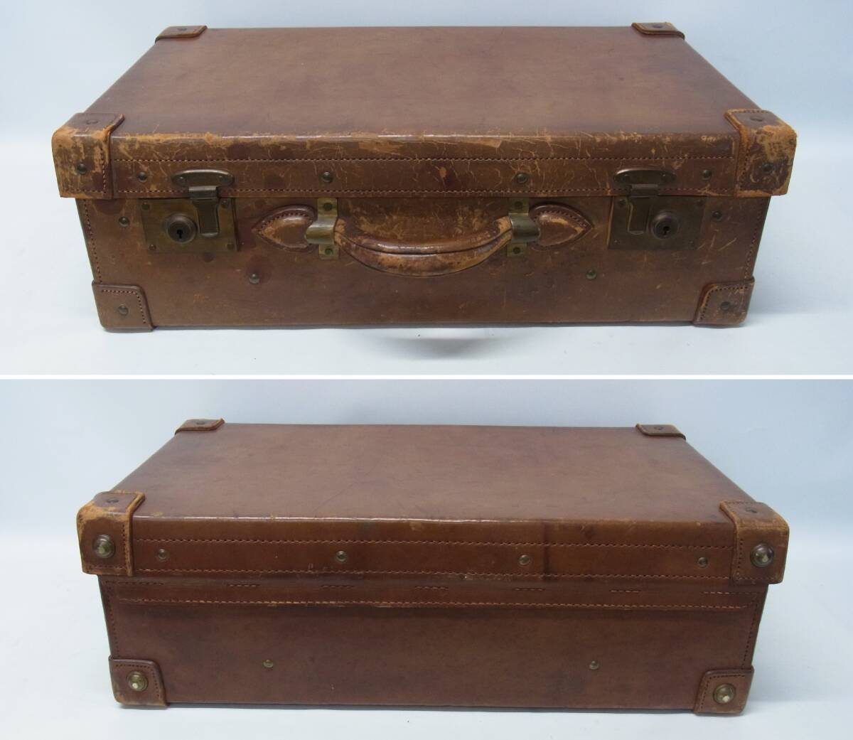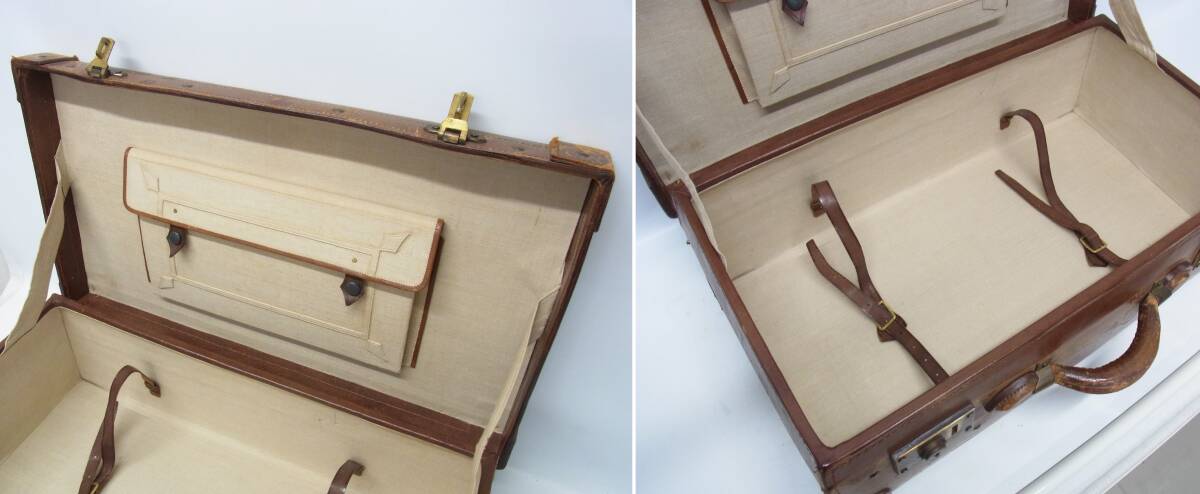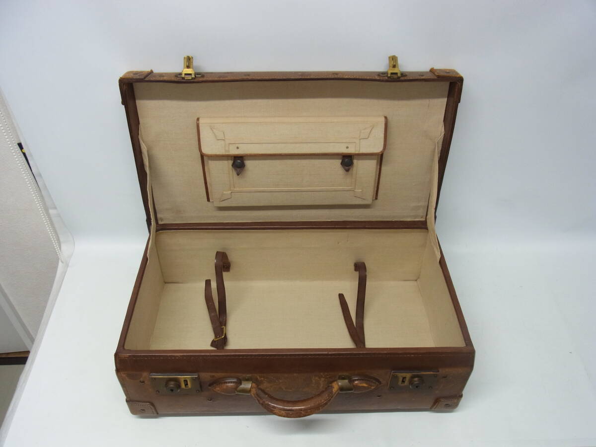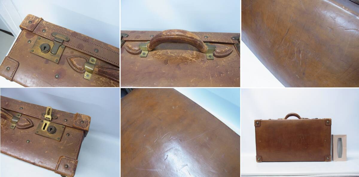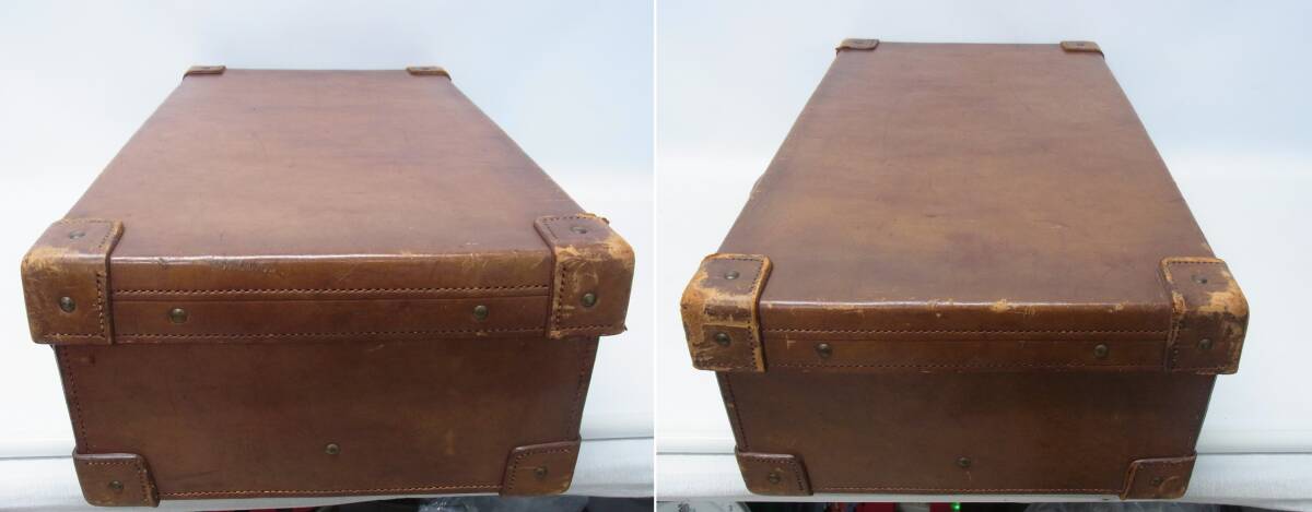 | ヴィンテージ☆大きめ レザー トランク 幅約61.5cm トランクケース ケース 収納 革 古着屋 インテリア ディスプレー レトロ ビンテージ 現状 140 | ||