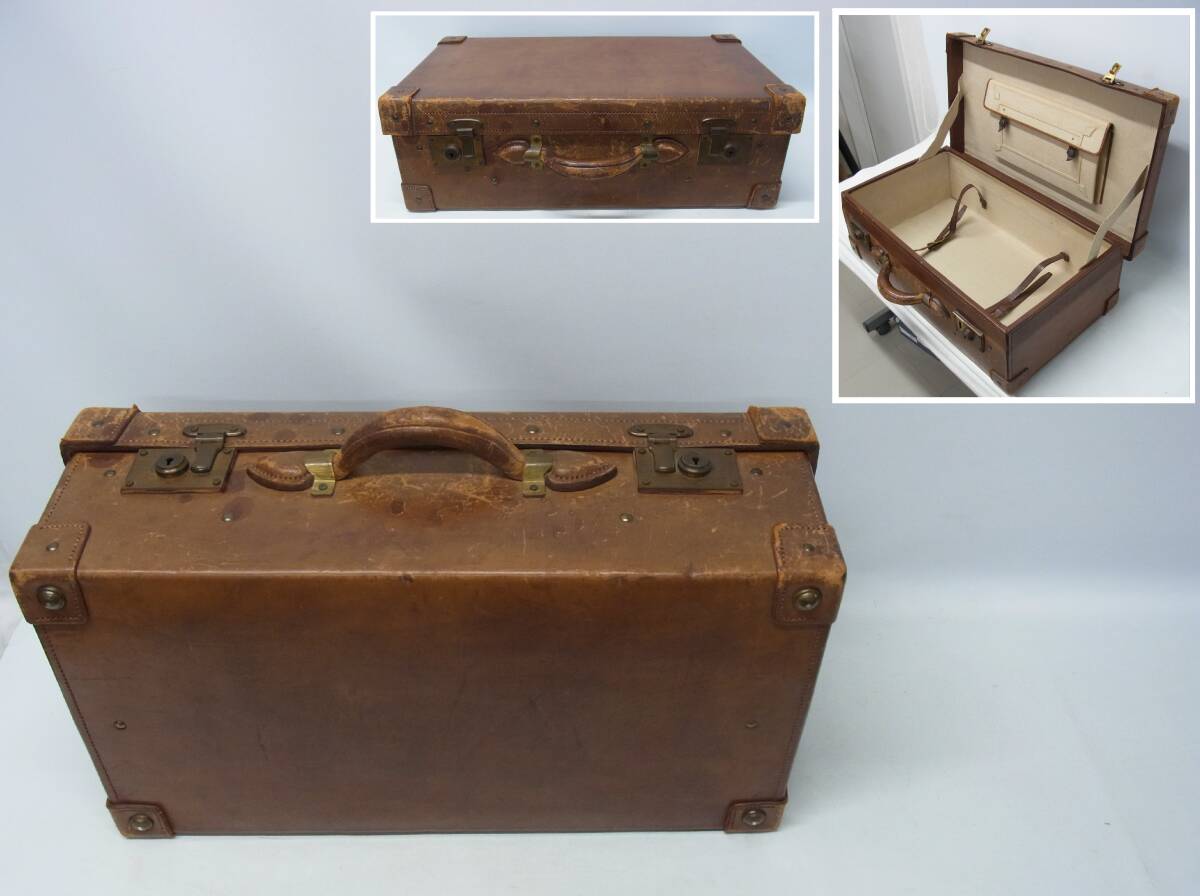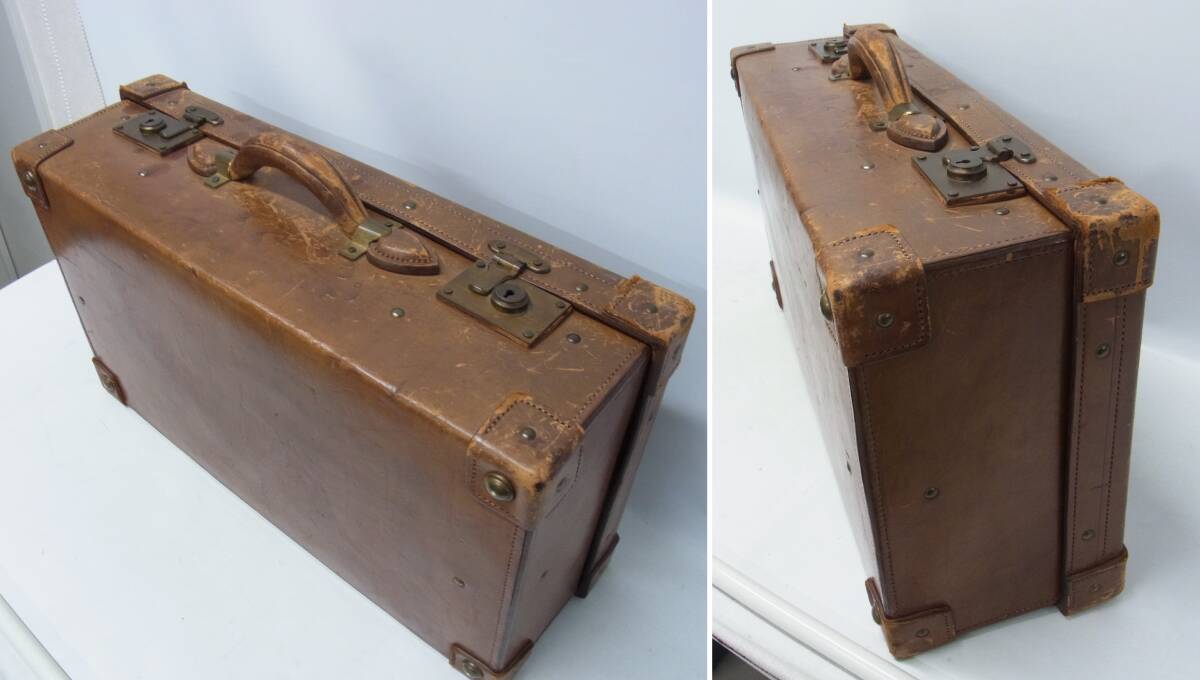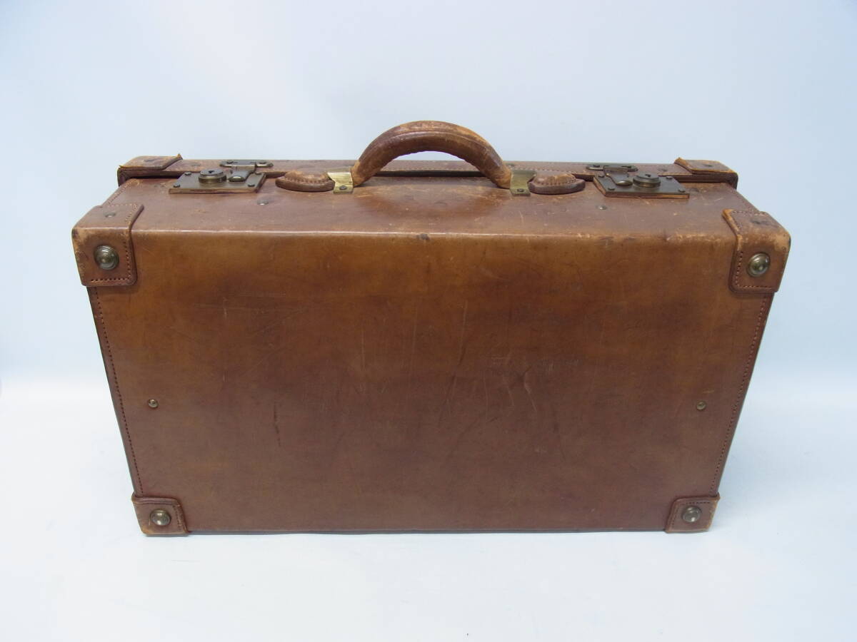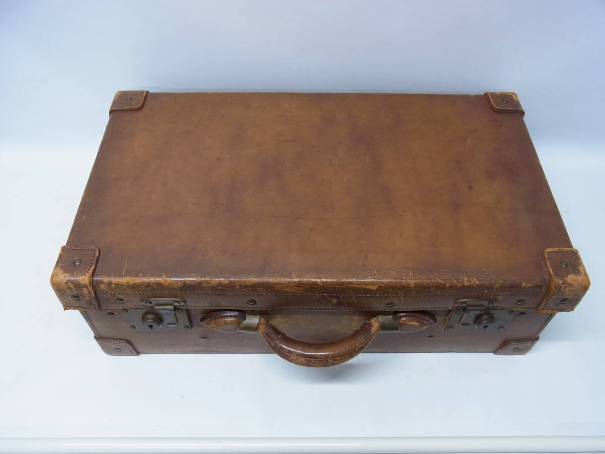 | ヴィンテージ☆大きめ レザー トランク 幅約61.5cm トランクケース ケース 収納 革 古着屋 インテリア ディスプレー レトロ ビンテージ 現状 140 | ||