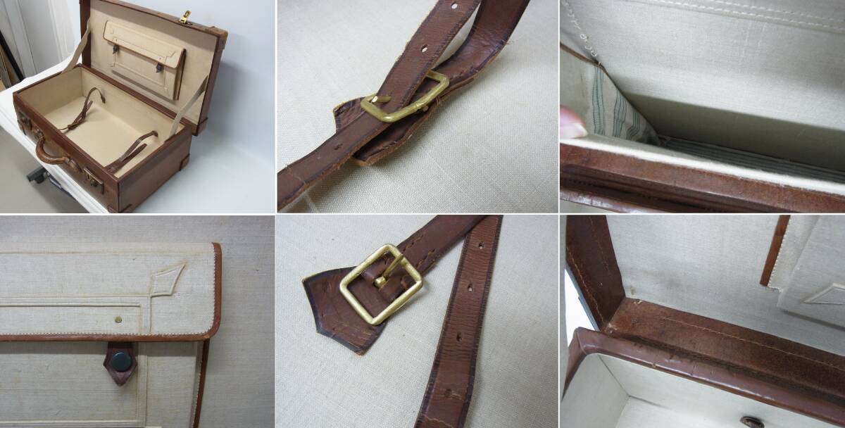 | 譲り受けた物で、本来の状態含め詳細は不明です。 画像にてお詳しい方、お分かりになる方のご判断でお願い致します。 鍵はありません。 スレ・キズやシワ・ワレ、シミや汚れ、変色などヴィンテージ感ございます。 現状でのお渡しとなりますので、お手入れなど前提のうえ、 十分なご検討をお願い致します。 状態に関しましては画像でご確認いただき、ご判断をお願い致します。 気になる点はご入札前にご質問ください。 ※専門的な知識がありませんので、ご質問内容によっては お答え出来ない場合があるかもしれません。予めご了承ください。 古いトランク、現状でのお渡し、経年保管品になりますので、 ご理解いただける方のご入札いただけましたら幸いです。 撮影した照明により、色合いが多少違って見えるかもしれませんが、ご了承ください。 【サイズ】※取手含まず 取手を上に向けた時:幅約61.5×奥行約20×高さ約36センチ ※素人採寸です。多少の誤差はご容赦ください。 ※画像では高さ約22cmのティッシュ箱と比較もしております。 【発送方法】 ・ゆうパック/140サイズ ---------------------------------------------------------------------- ※ゆうパックの送料はお届け地域によって送料が異なりますので、 気にされる方は必ずご入札前に「質問欄」よりお問い合わせください。 | ||