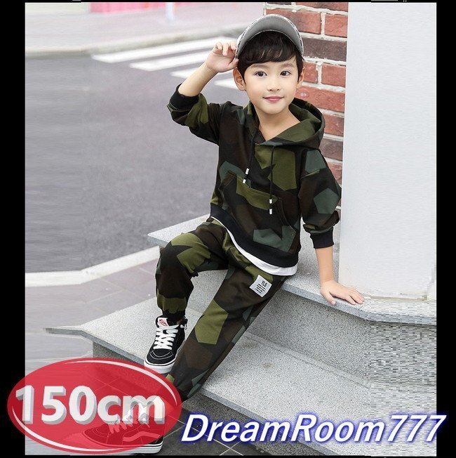 【150cm】ニュアンススター セットアップ 迷彩グリーン パーカー スエット 子供服 女の子 男の子 ルームウェアー 韓国子供服