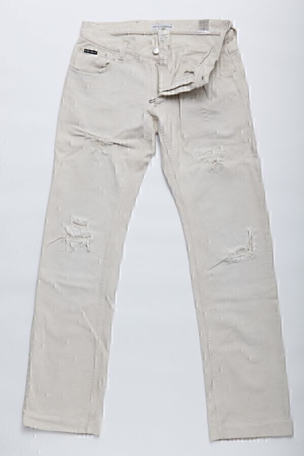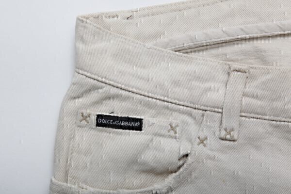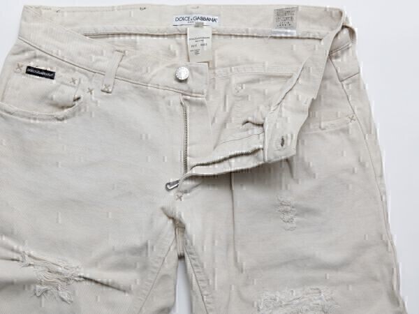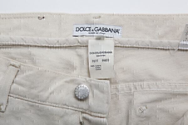 アンティーク☆古着 ★DOLCE&GABBANA ドルチェ&ガッバーナ D&G レザーロゴクラッシュチノパン Size48 L【P61T 9403】クリーム【本物保証】