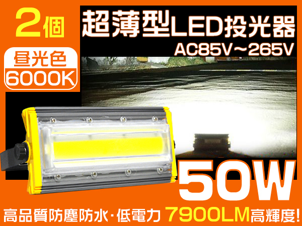 LED投光器 50W 800W相当 7900LM 360度回転 3mコード PSE PL EMC対応 IP67 作業灯 昼光色 1年保証 送料無料 2個 HW-I