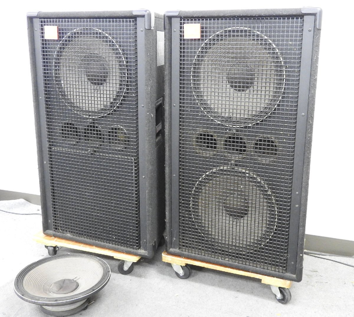 ◆外観◆ ・★片側のウーファーユニットが1つ外れております。 ・★全体的に傷や汚れ、サビ、スレ、けずれ、書き込み等、強めの使用感・経年感が見受けられる外観となります。 |