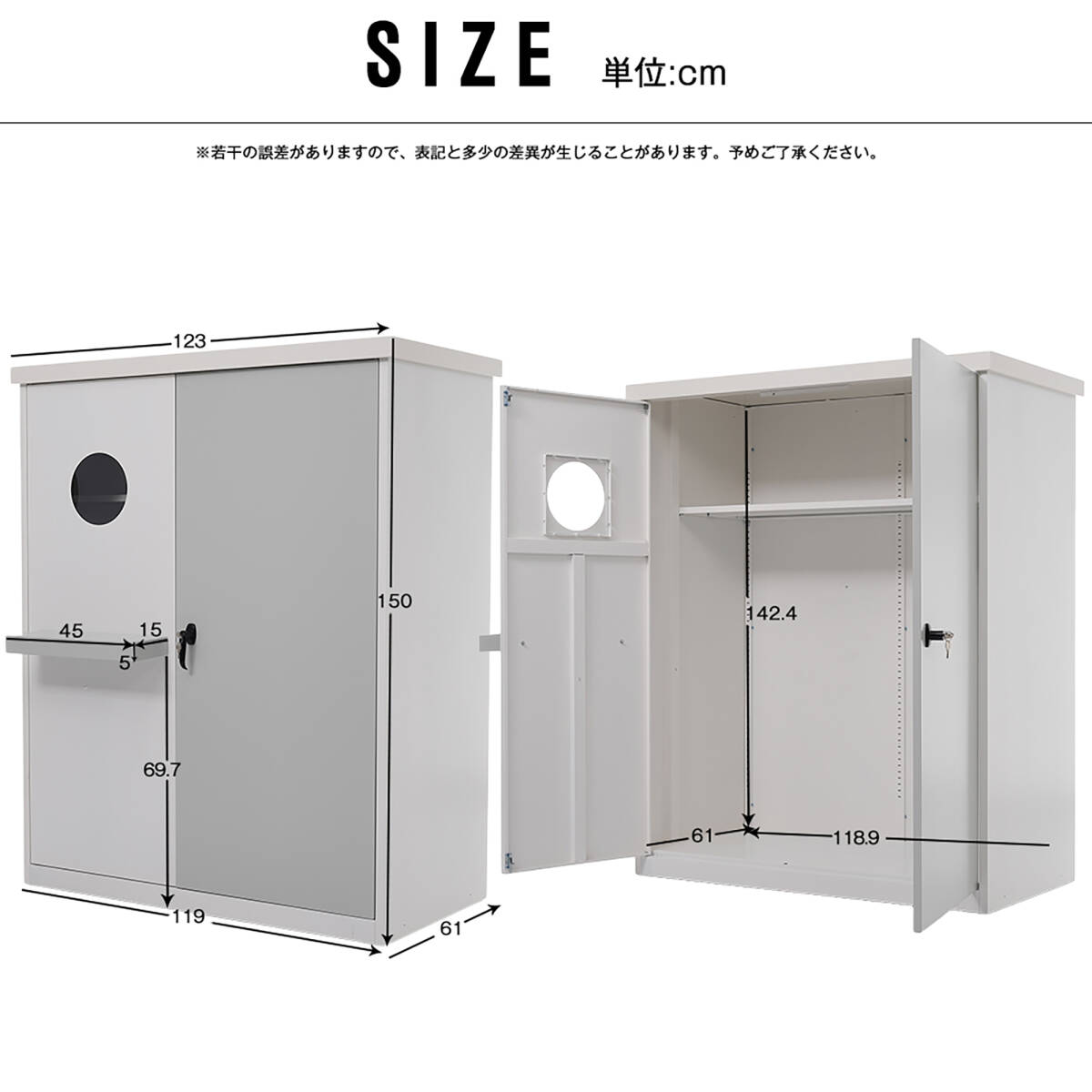 123*61*150cm 戸外収納庫 倉庫 大型物置 屋外 防水/耐侯 収納可能 ガーデン/庭/田畑/農場 頑丈 大容量 専用キー付き