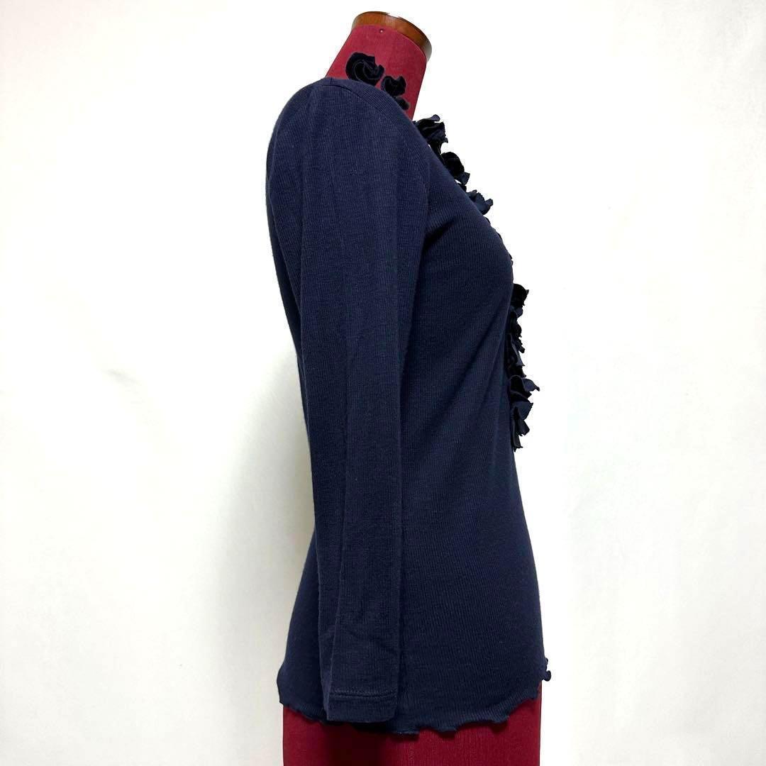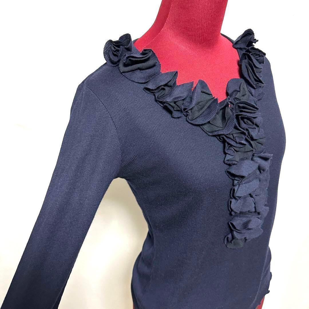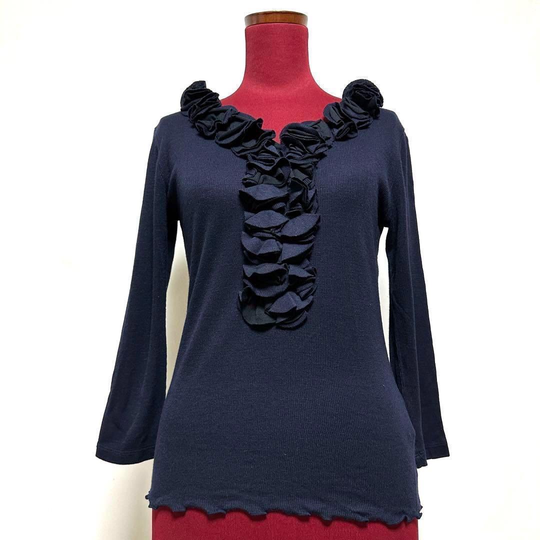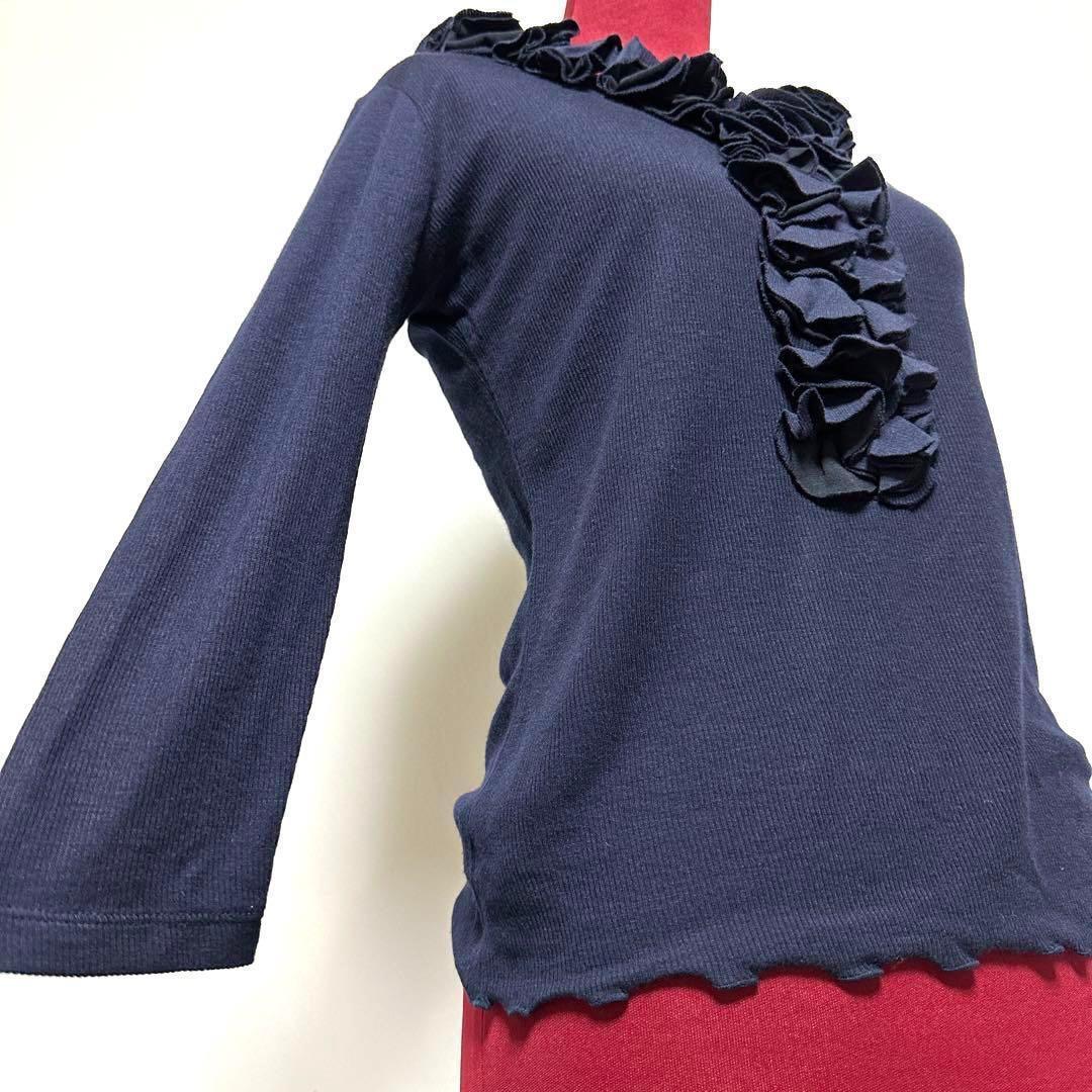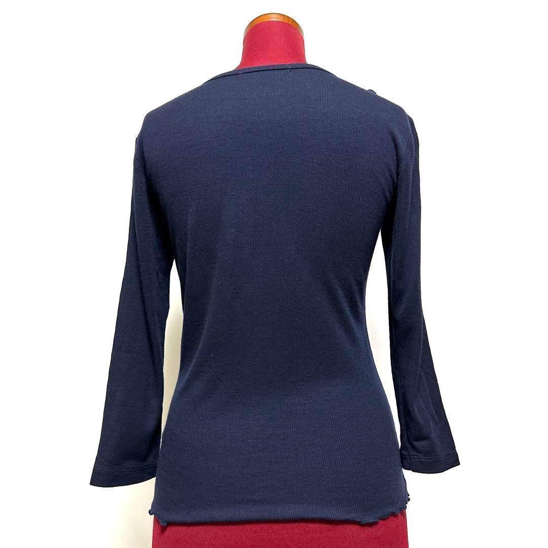 カットソー Vネック 7分袖 リブニット 薄手 フリル オフィスカジュアル 美シルエット 日本製