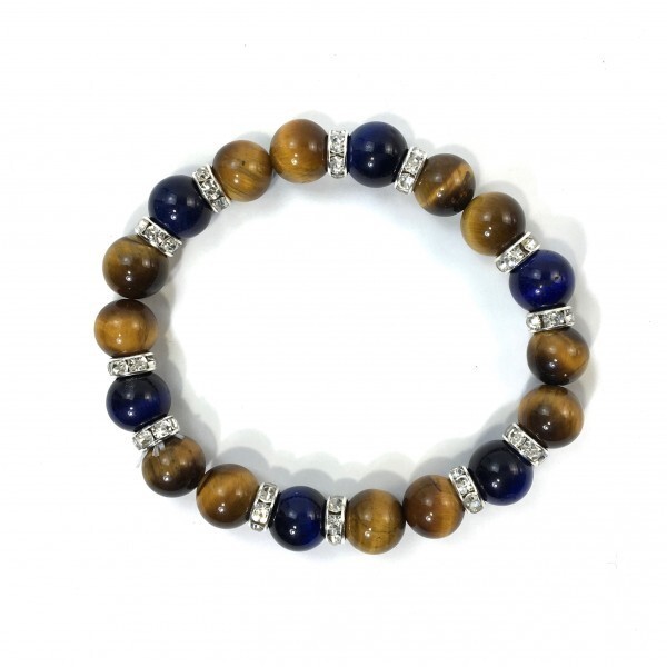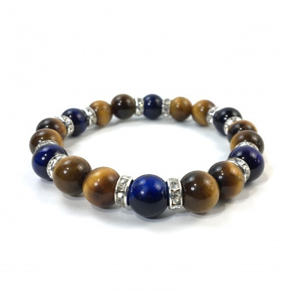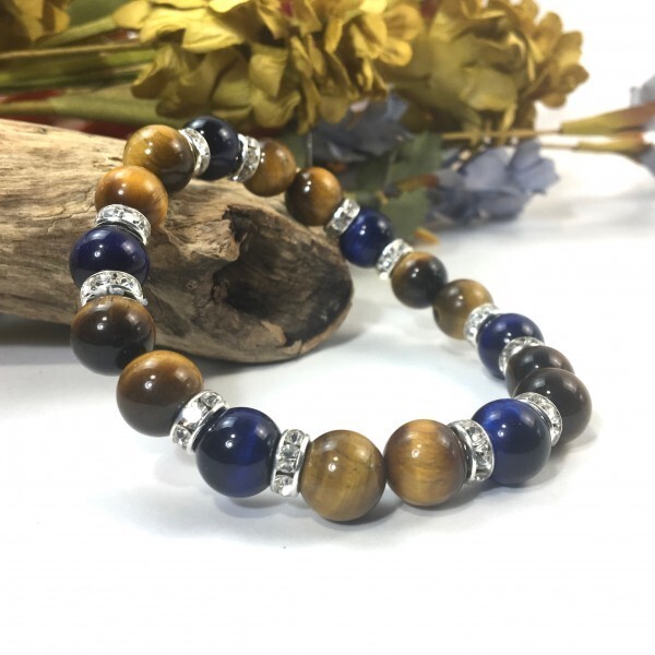 こちらは、タイガーアイとブルータイガーアイを組み合わせたブレスレットです。間にはロンデルを挟み高級感あるデザインに仕上がっています。石大きさは腕にも馴染みやすいように10mm玉で内径約17cm(伸可能)です。数に限りがございますので気になる方はお早めにどうぞ。サイズ調節も可能ですのでサイズ調節の場合は取引ナビにてご一報くださいませ。(サイズ調節無料です)