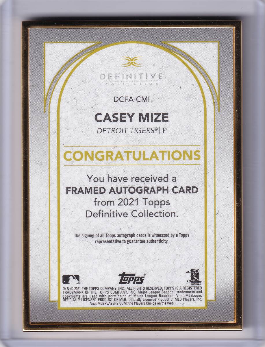 【RC】CASEY MIZE 直筆サインカード 30枚限定 1st# 2021 TOPPS DEFINITIVE ROOKIE FRAMED AUTOGRAPH CARD / ケーシー マイズ / 直書き AUTO