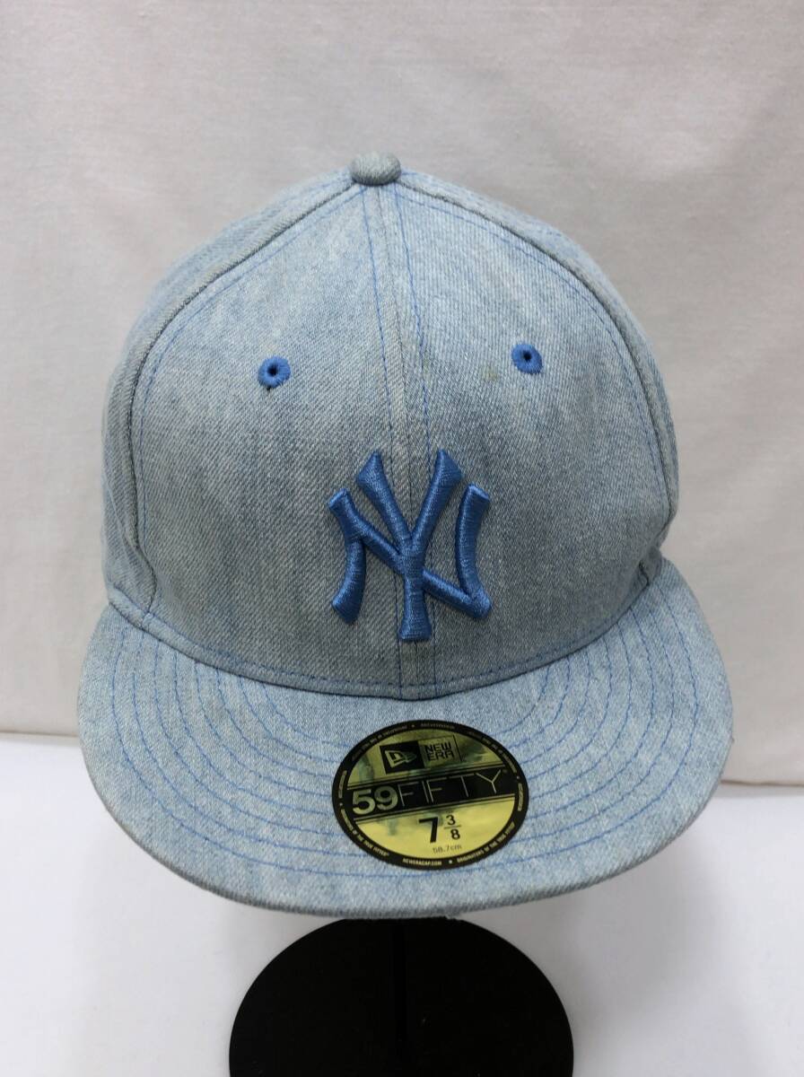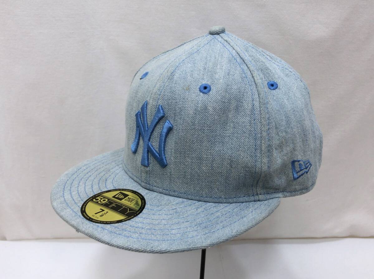 NEW ERA 帽子 デニム キャップ NY ニューヨークヤンキース 59FIFTY 7 3/8 サイズ 58.7cm ライトブルー 水色 ニューエラ F26