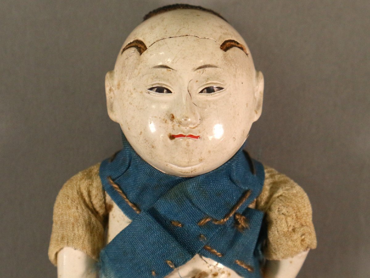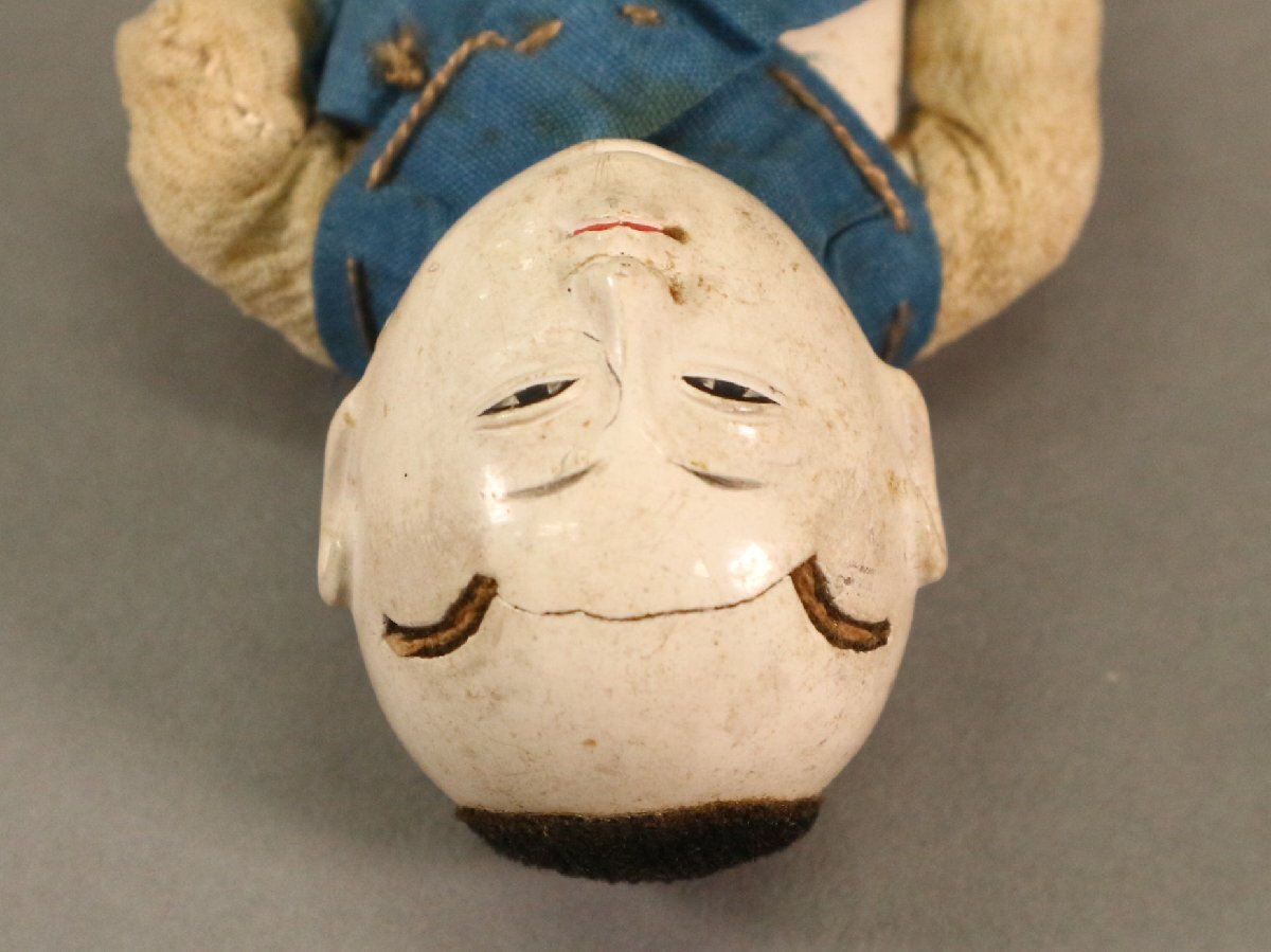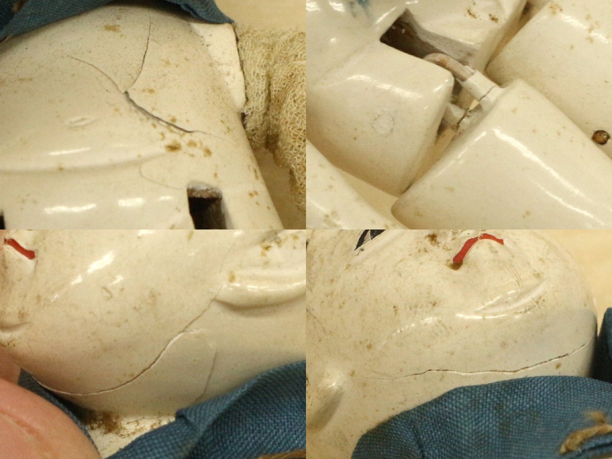 品名】 時代三つ折れ人形 御所人形 木箱 日本人形 郷土玩具 民芸 伝統工芸 風俗人形 置物 【状態】 経年によるキズやヨゴレ、イタミ、ヒビ、剥落、足の欠損がございます。 時代や産地、作者の記載がある商品に関しては当店での判断によるものですので、保証はいたしかねます。あくまで参考程度とお考えいただ き、画像による判断をお願い致します。 上記を含む商品の状態や詳細(材質等)を写真にてご確認いただき、納得された上での入札をお待ちしております。 【大きさ】 幅:約5cm 奥行:約3cm 高さ:約9cm (採寸につきましては多少の誤差があるかと思いますので、予めご了承ください。) |