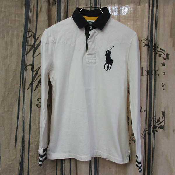 ●Polo by Ralph Lauren ラガーシャツ シンプルながらもヴィンテージ加工されたラガーシャツです。 ラルフローレンらしいこだわりを感じさせるデザインです。 目立ったダメージはありませんが、スレ・多少の使用感はあります。 ●サイズ表記:S(170/92A) ・着丈:68.5cm ・身幅:49.5cm ・袖丈:63cm ・肩幅:44cm ※素人採寸になりますので、多少の誤差はお許しください。
