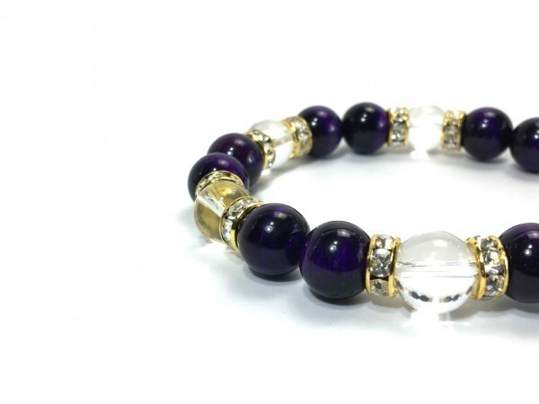 パープルタイガーアイ×水晶 パワーストーン ブレスレット 天然石ブレス 10mm (ロンデル:ゴールド) メンズ・レディース 浄化済み