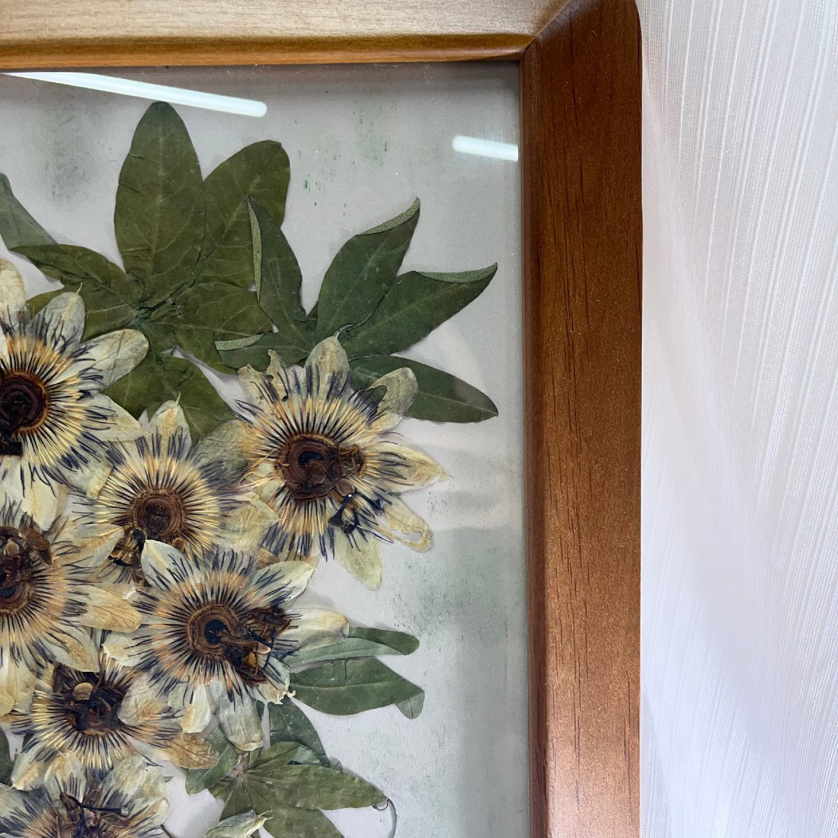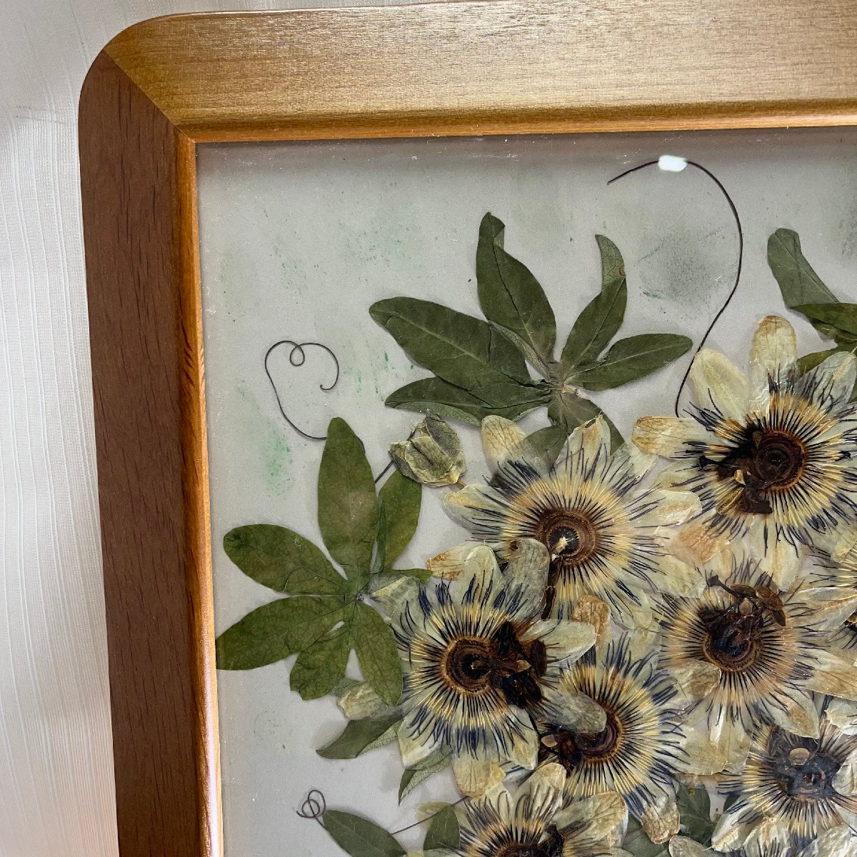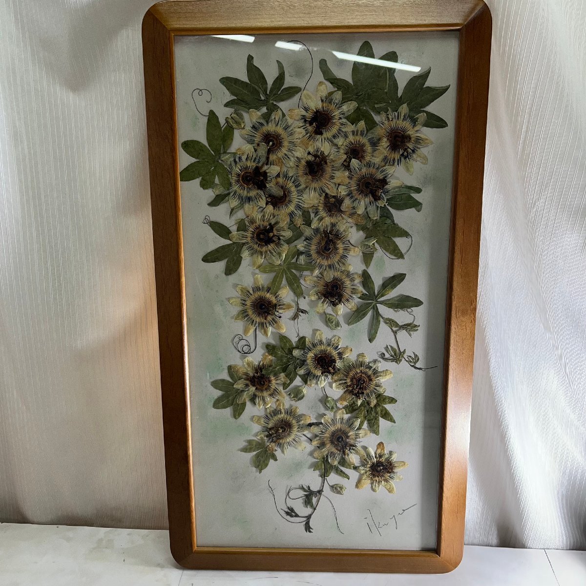 | =R= 押し花 額装 アート 作者不明 レトロ 現状品 =B-250963 | ||