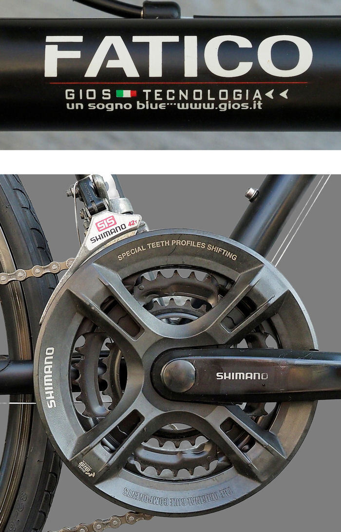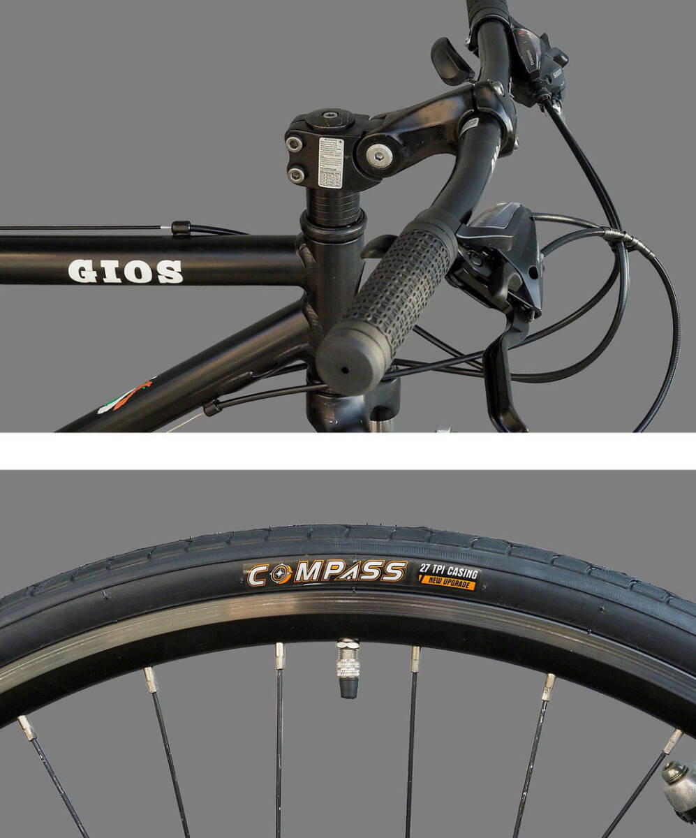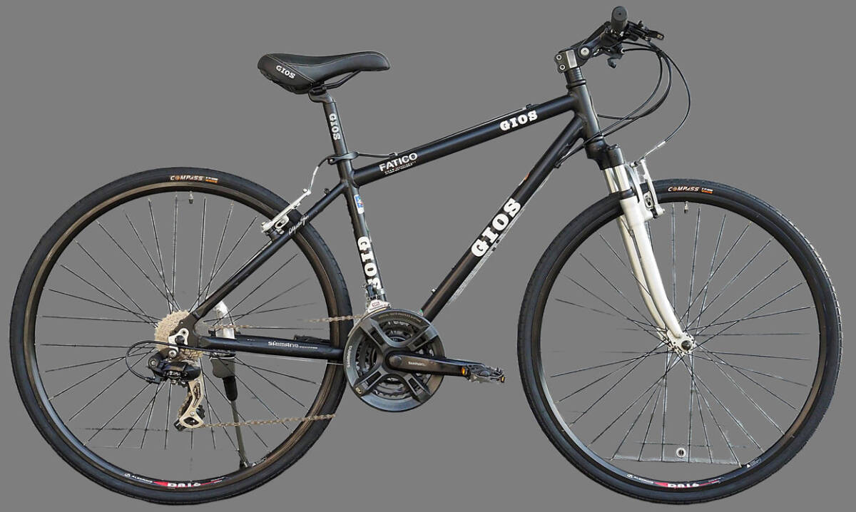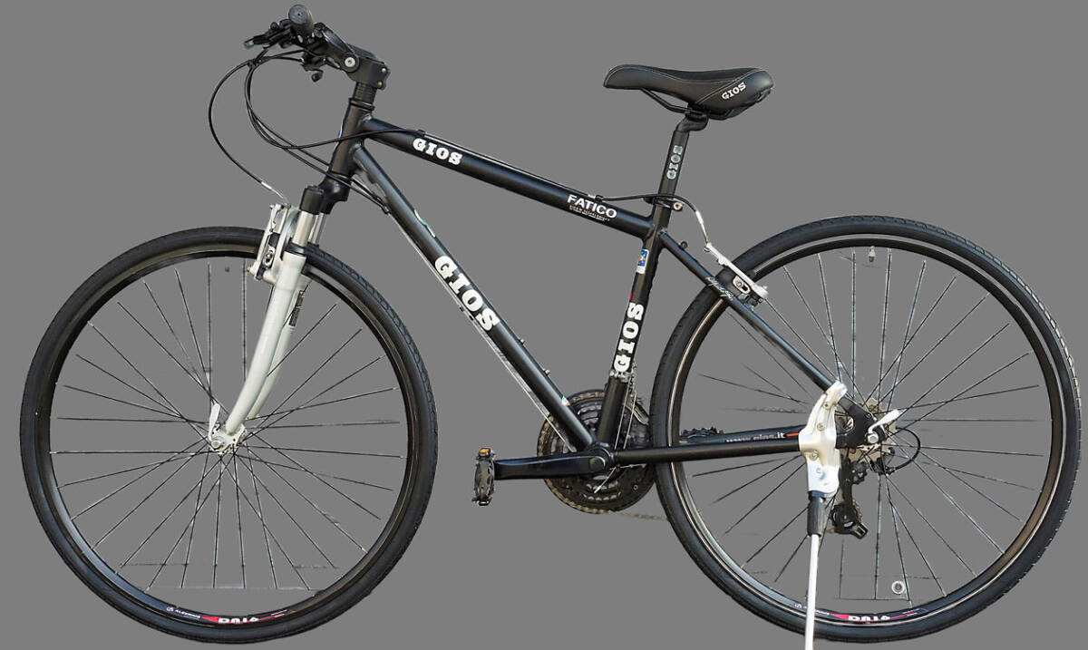 GIOS(タイヤ新品)FATICO)ほぼ綺麗)700c)Shiimano 21s)ct44cm)ブラックカラー)Fサス)クロスバイク 中古