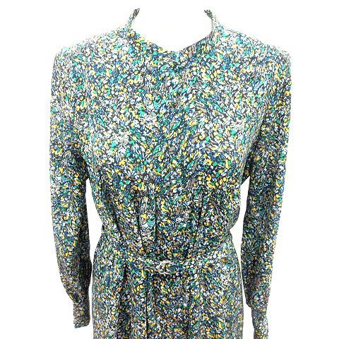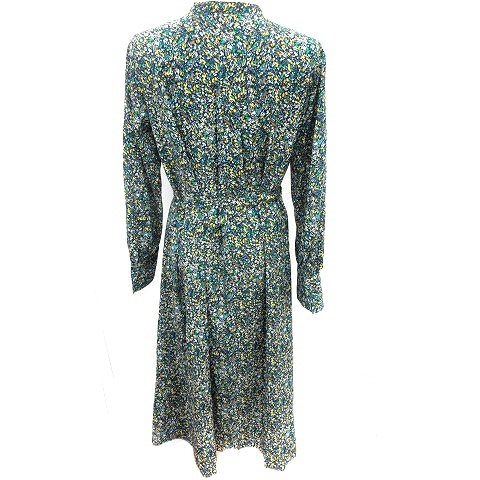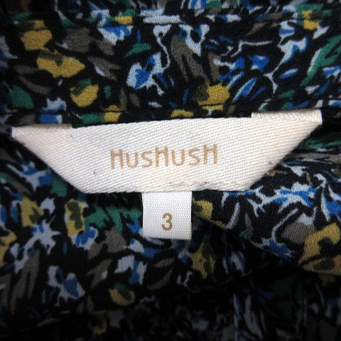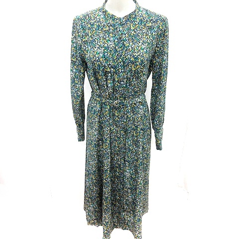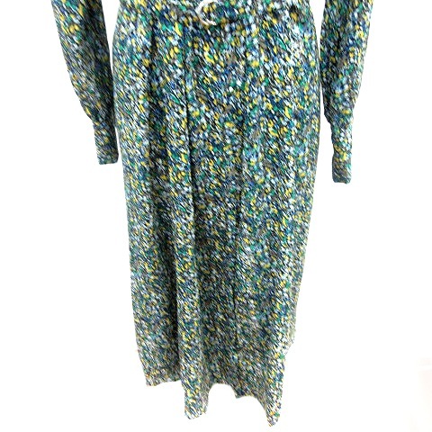 ハッシュアッシュ HusHusH ワンピース Aライン ロング 長袖 総柄 ウエストマーク 3 緑 グリーン /RT レディース