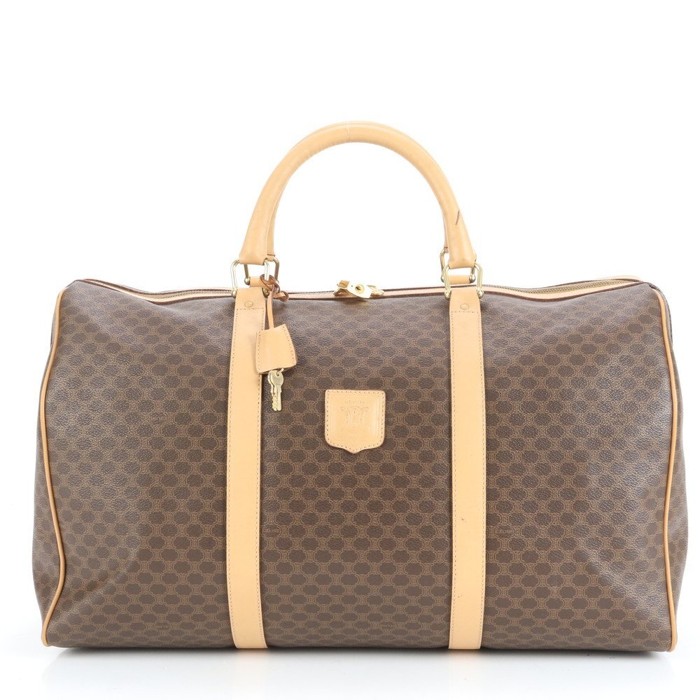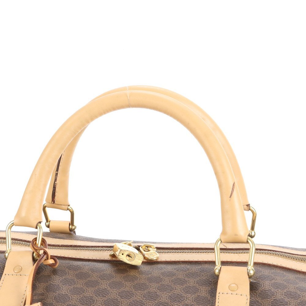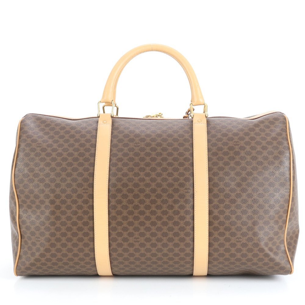 1円■美品■ヴィンテージ■セリーヌ■マカダム レザー ボストン バッグ 出張 旅行 トート ビジネス ブラウン 茶色 A4 メンズ EEE CT24-7
