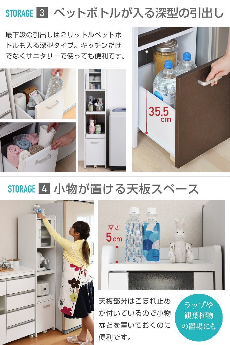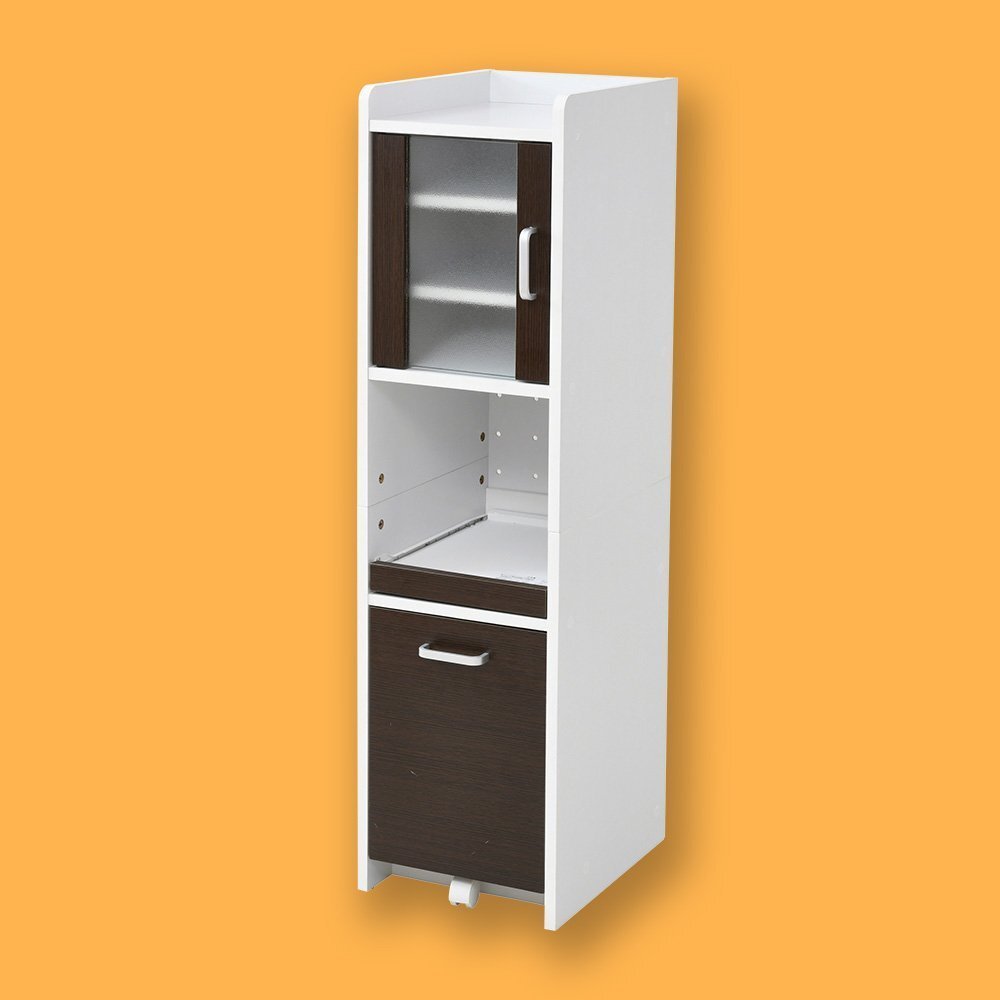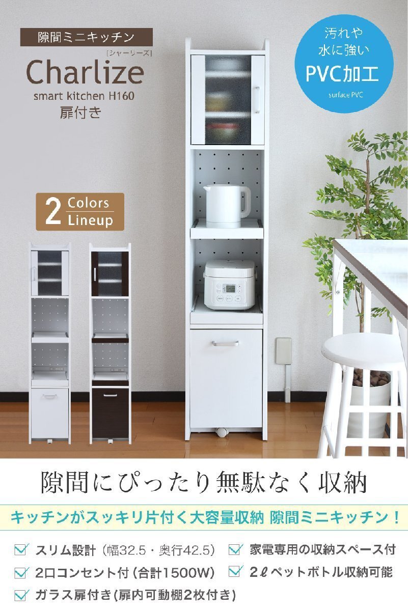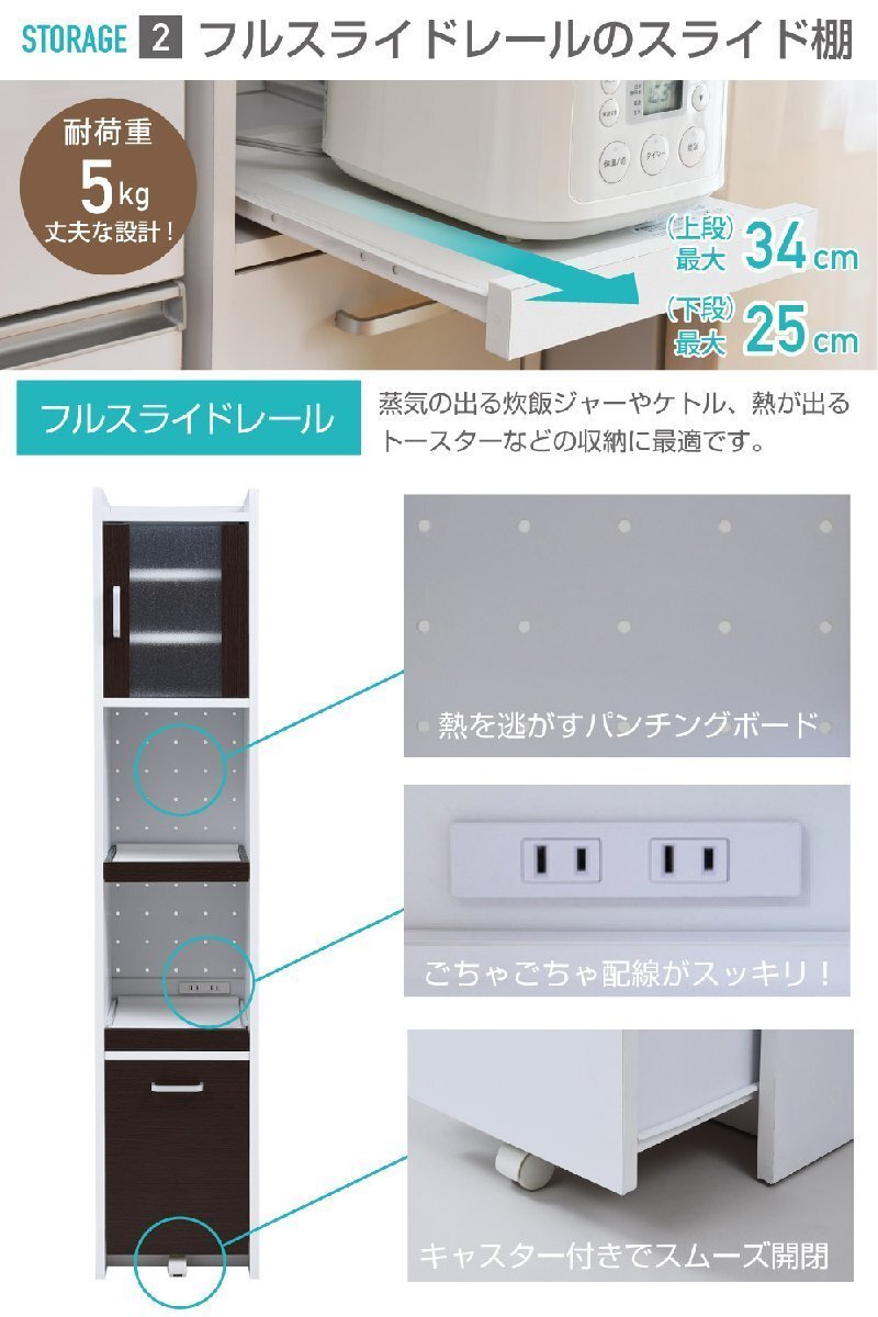 ■商品説明 隙間タイプのキッチン収納。ちょっとした隙間や収納スペースにお困りの方にぴったりな、スリムタイプの家電収納家具。家電が2台収納できる、高さ160cm |