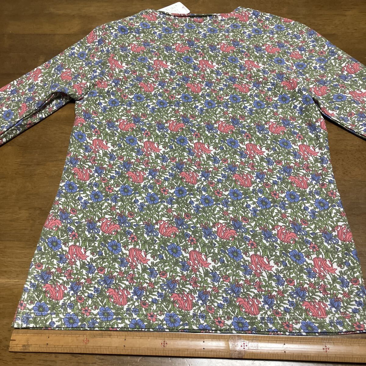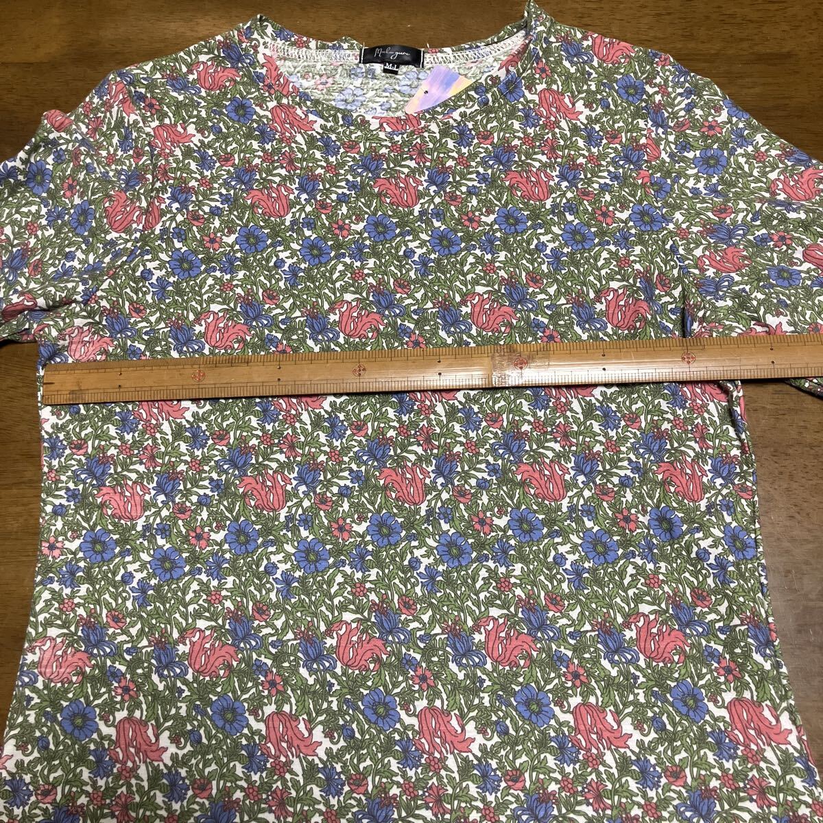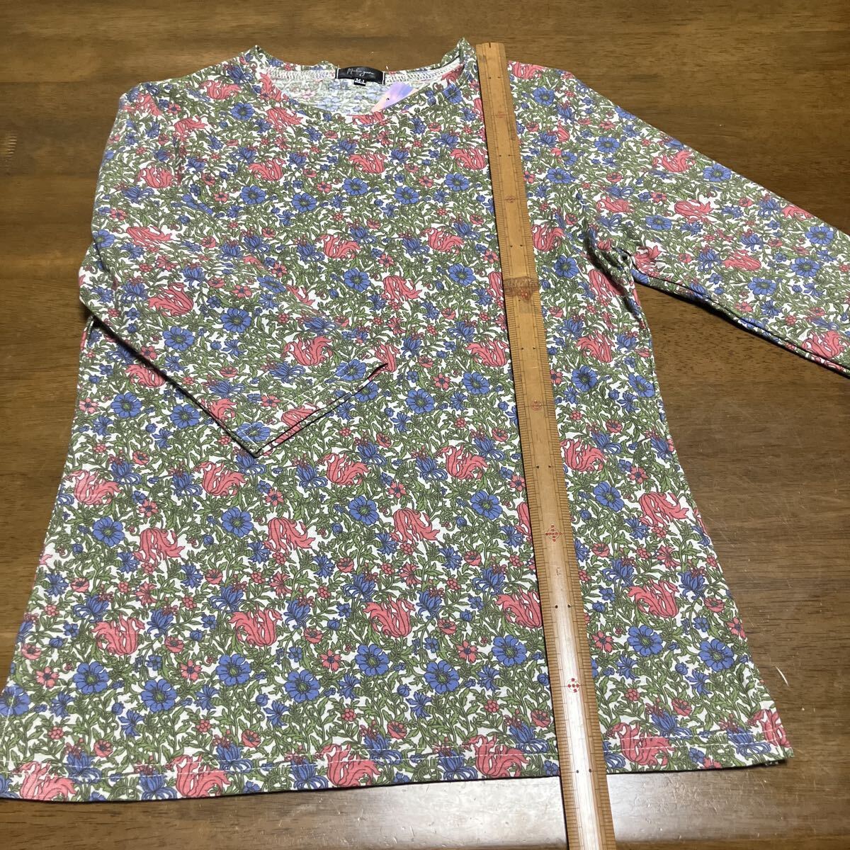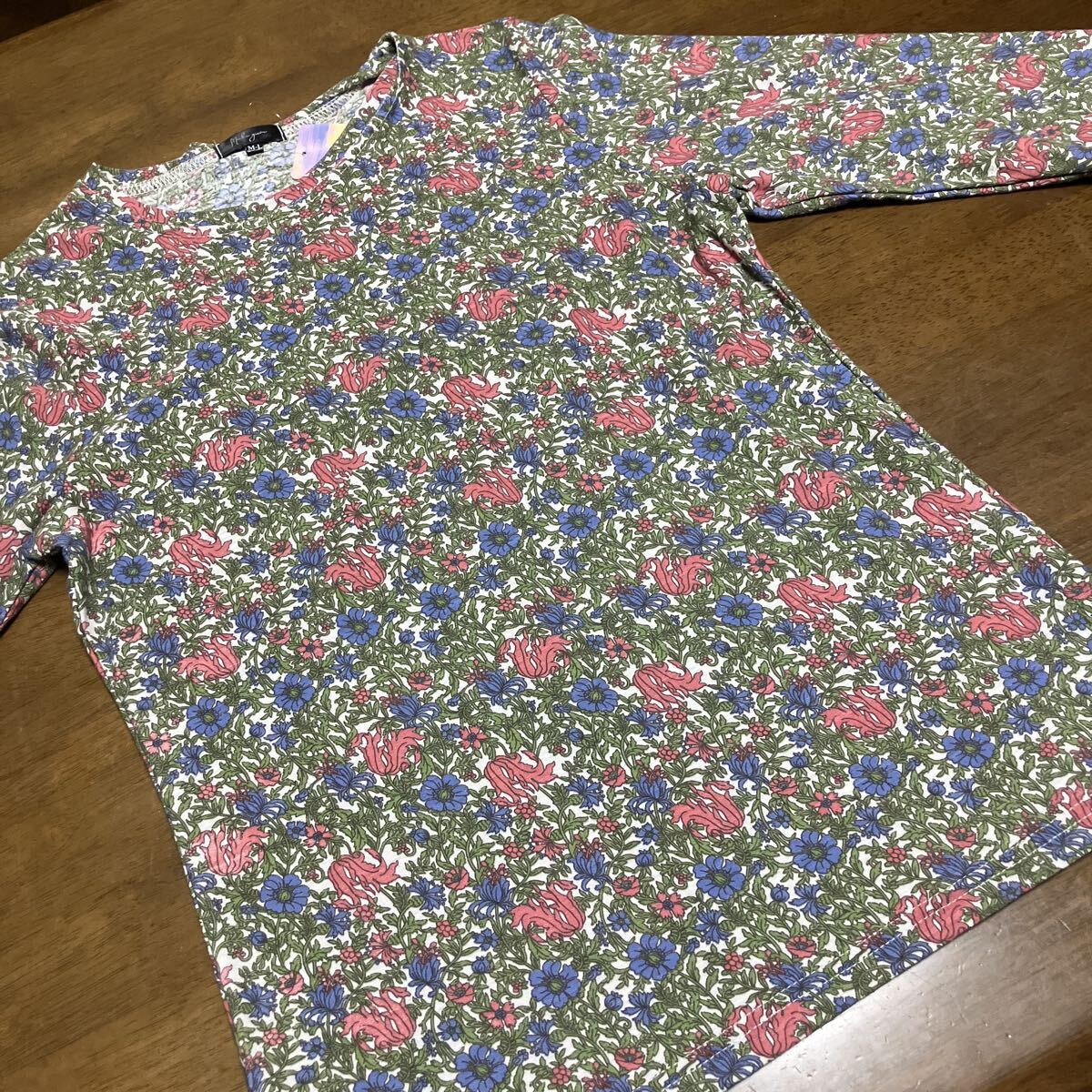 綿100%の七分袖のTシャツです。落ち着いた色合いで秋口に便利な1枚です。
