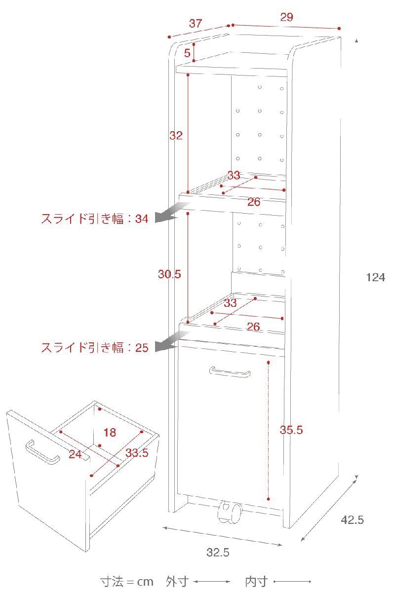 ■本体サイズ [外寸]幅32.5×奥行42.5×高さ124cm |