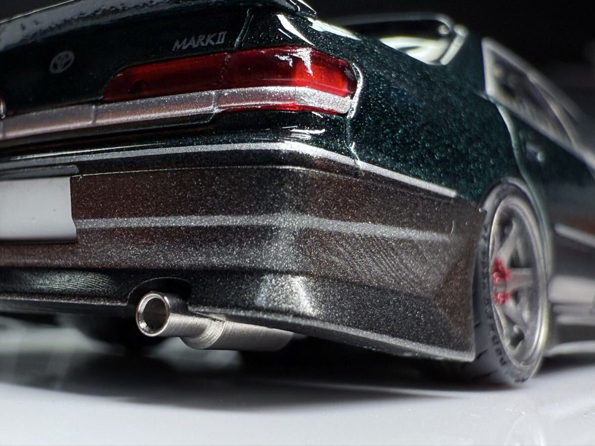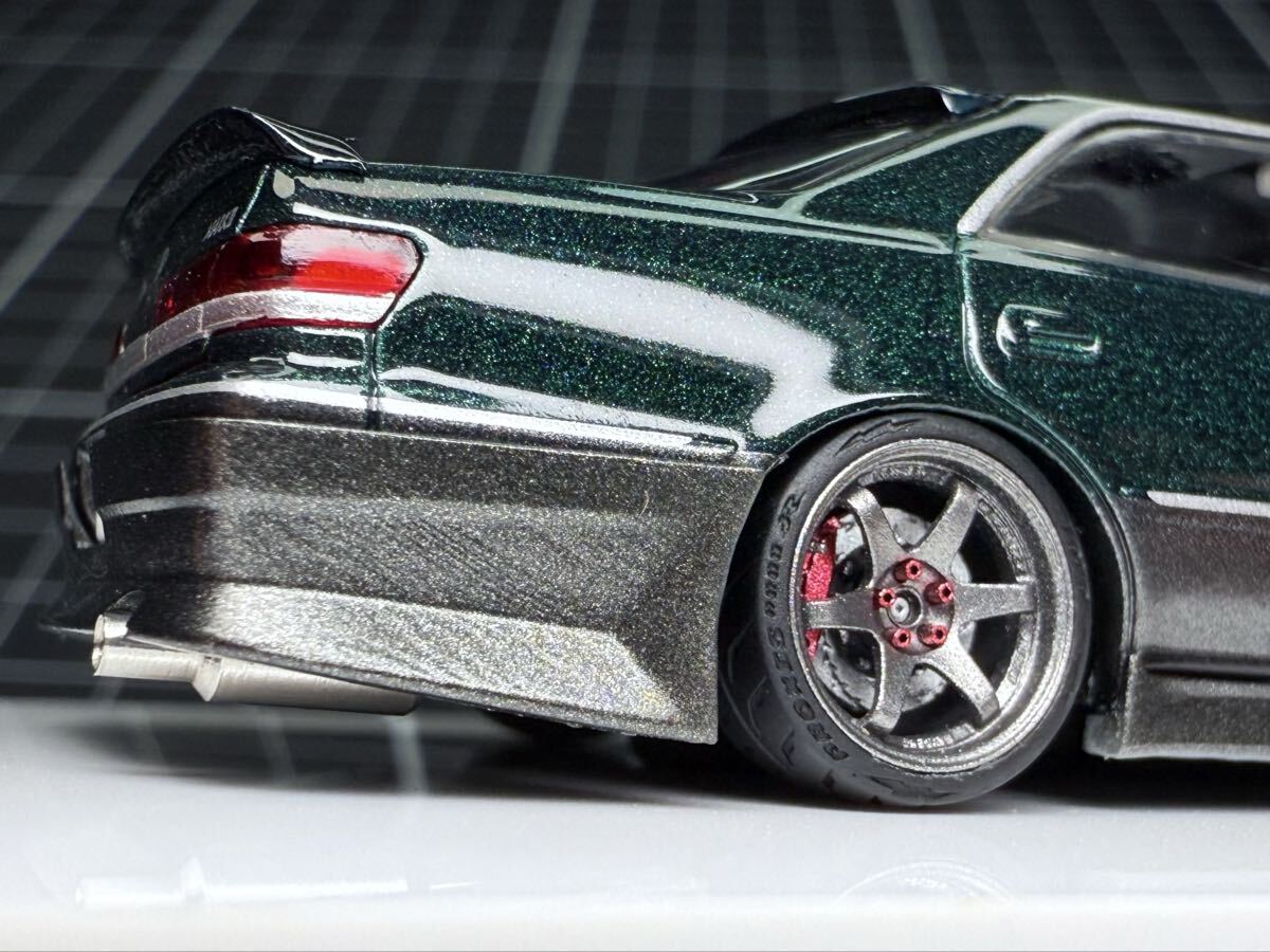 エアロは出来るだけ車体塗装の発色と近い色を吹いて、GSIクレオスのGX100スーパー光沢トップコートにて仕上げ済み