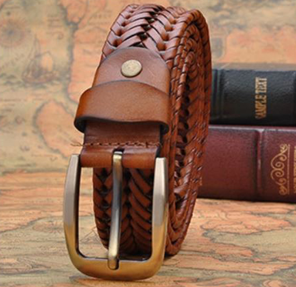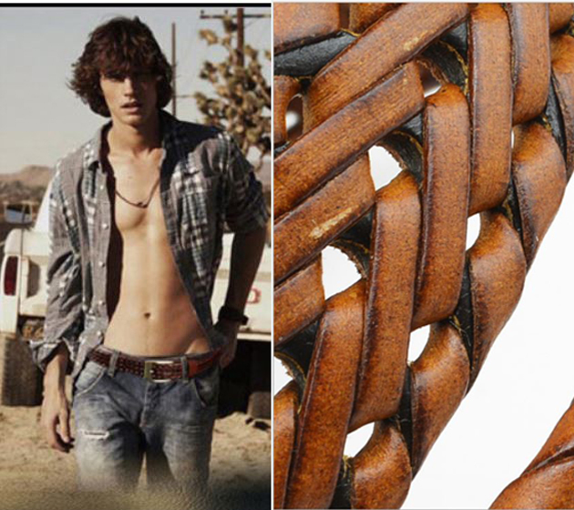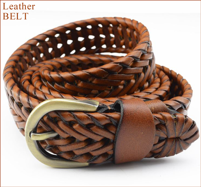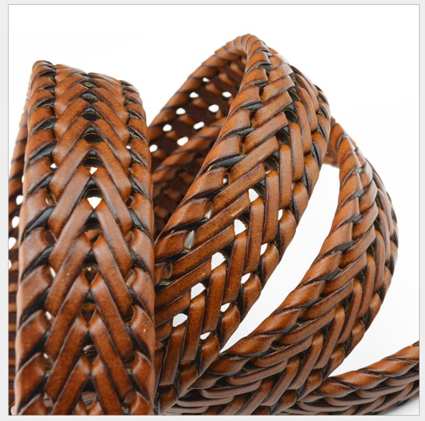 レザー!◆本牛革ベルト ブラウン◆イタリアンレザー メッシュ 編み込み 本革!ハンドメイド 手編み 渋い メンズ 限定!カウレザー 1円~ 14t