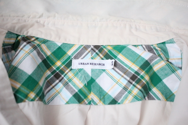 【URBAN RESEARCH】アーバンリサーチ へちまカラー 長袖シャツ 生成り (40)ネコ目ボタン チンストラップ USED