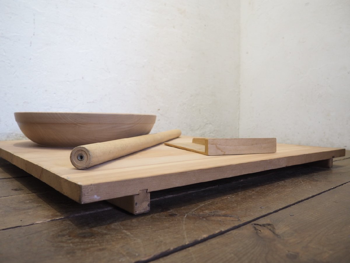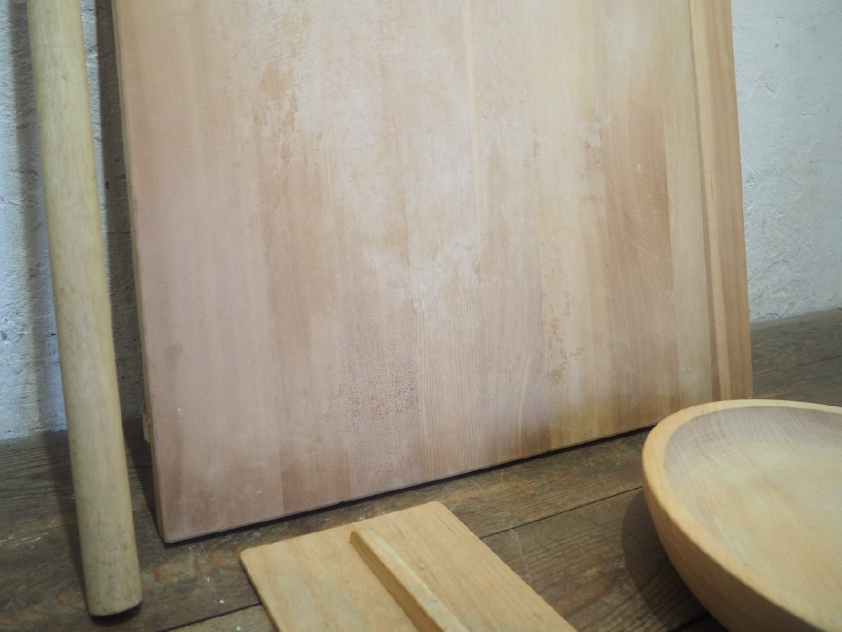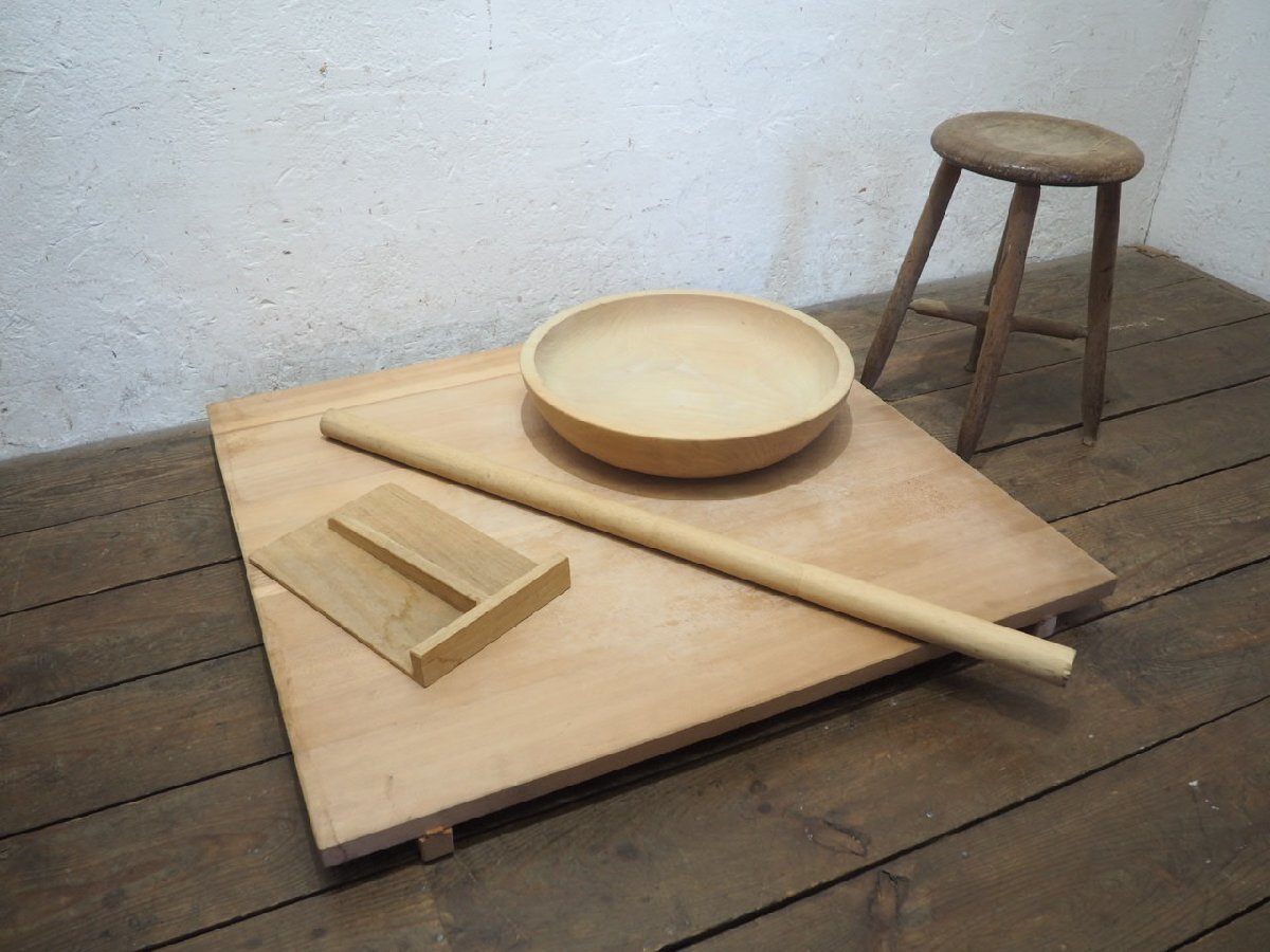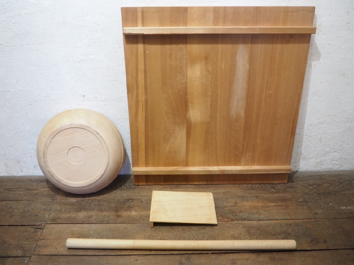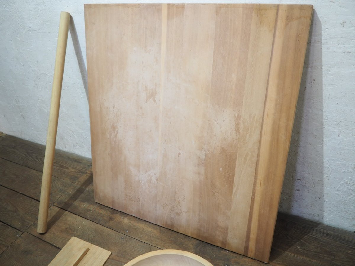 タV0023◆こね鉢◆のし板◆麺棒◆こま板◆合計4点セット◆手打ち 切板 うどん そば 蕎麦打ち 麺打ち まな板 こね台 木材 道具K笹4