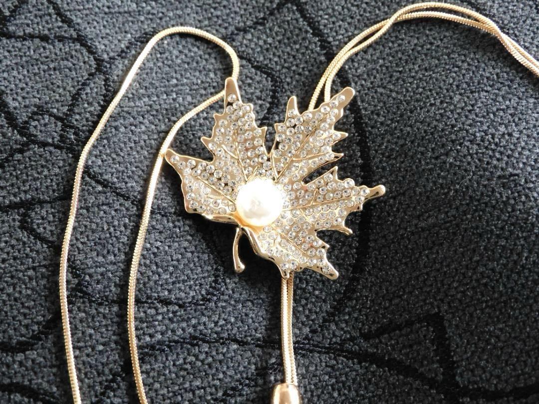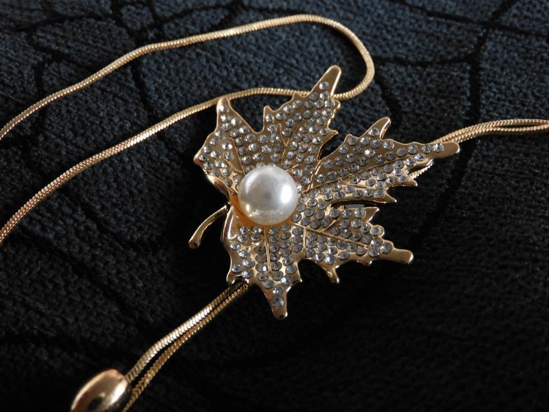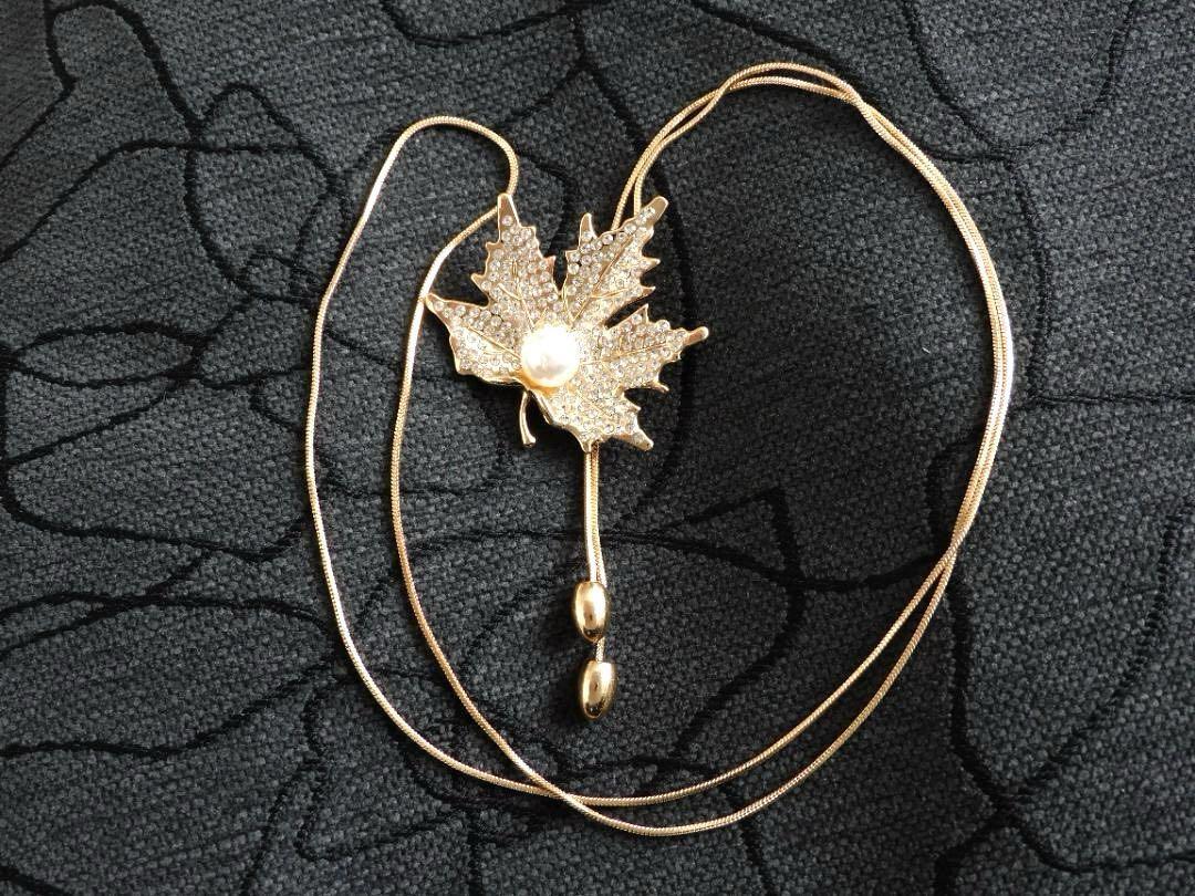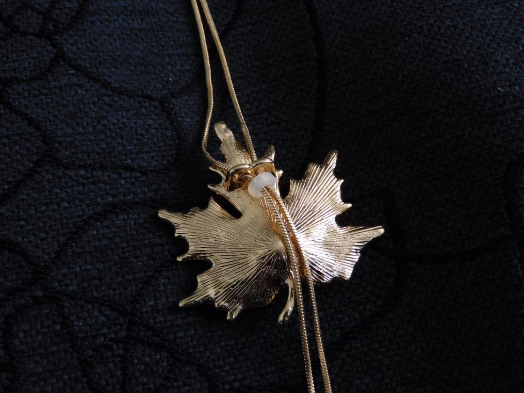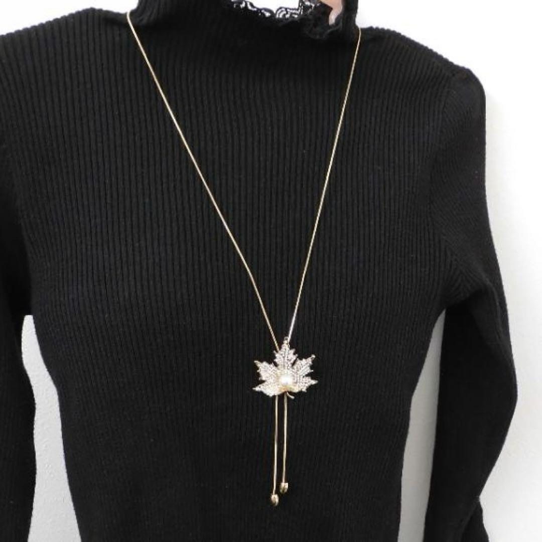 (2612) ゴールド 大人可愛いもみじ 紅葉 ロングネックレス 自由に長さ調整