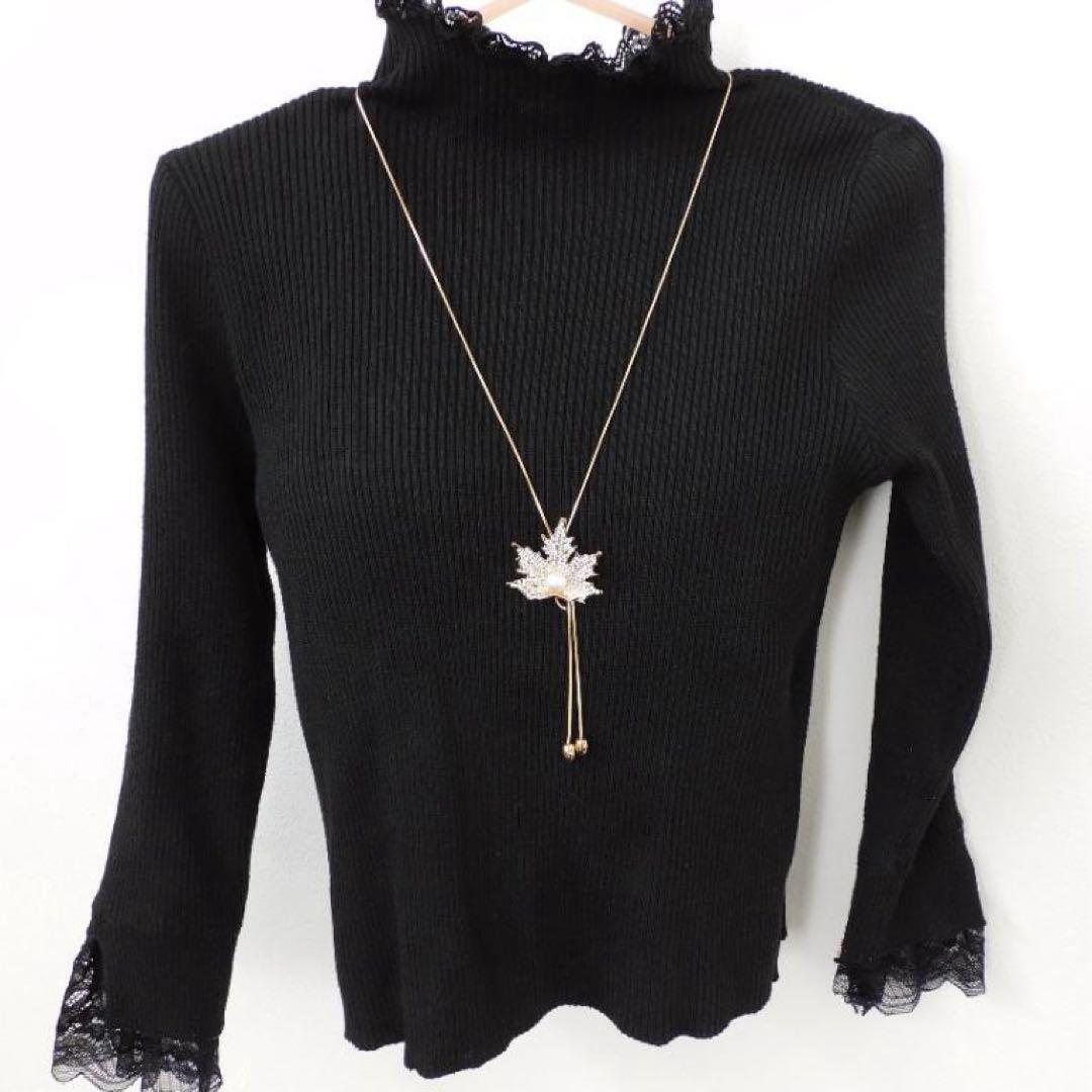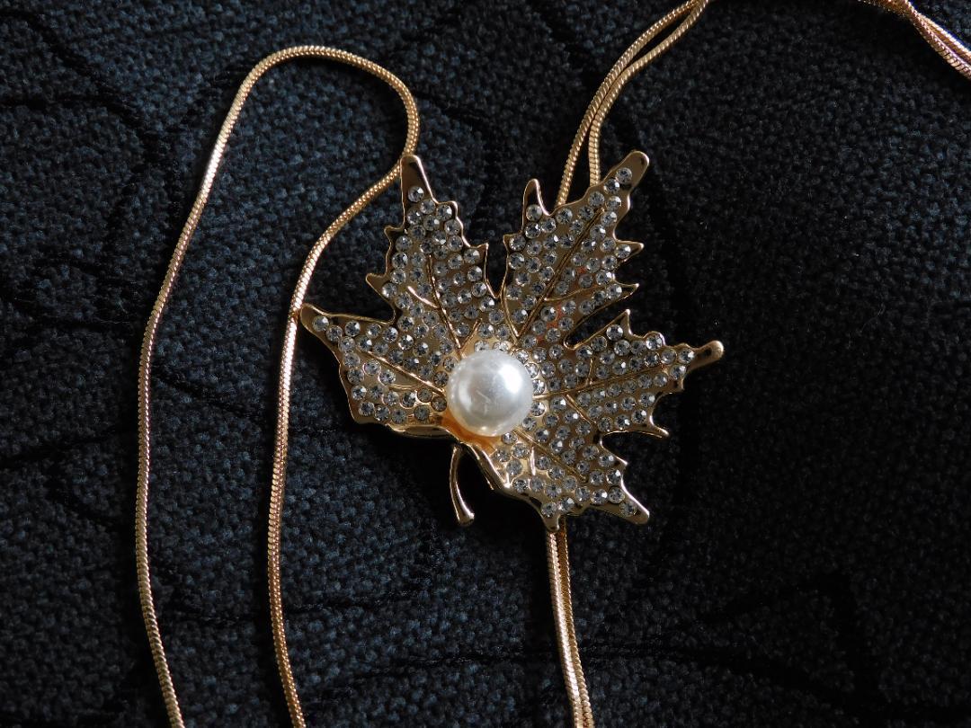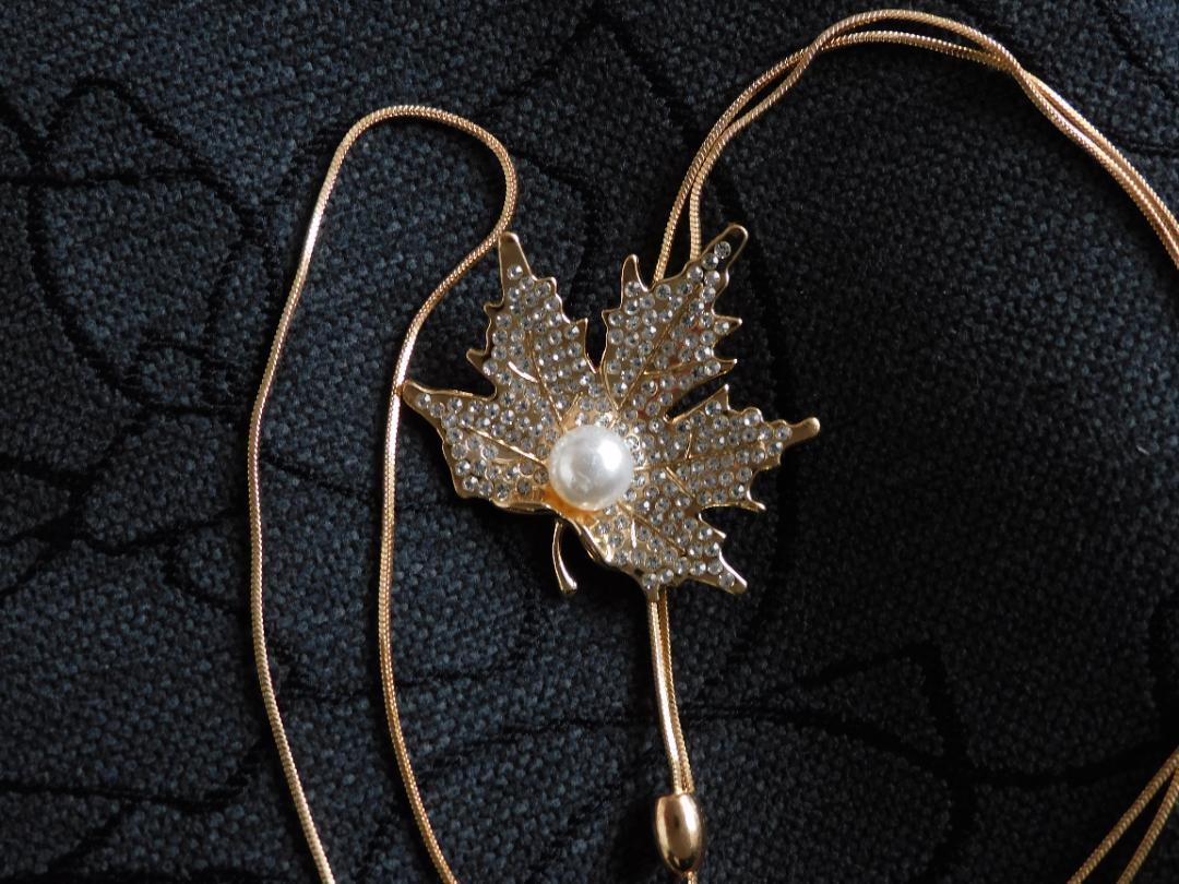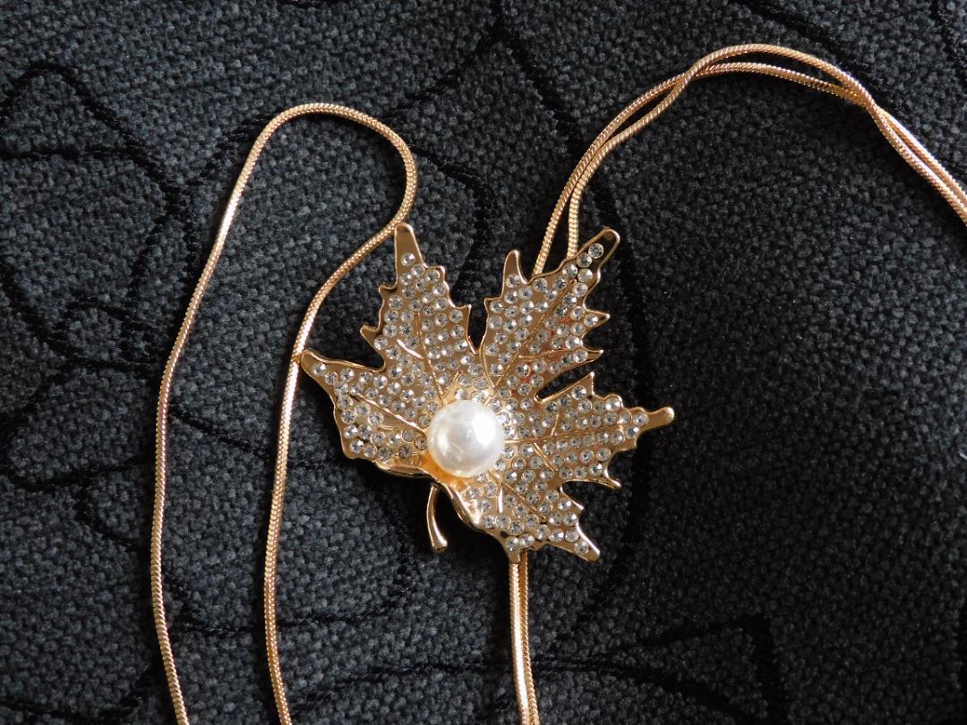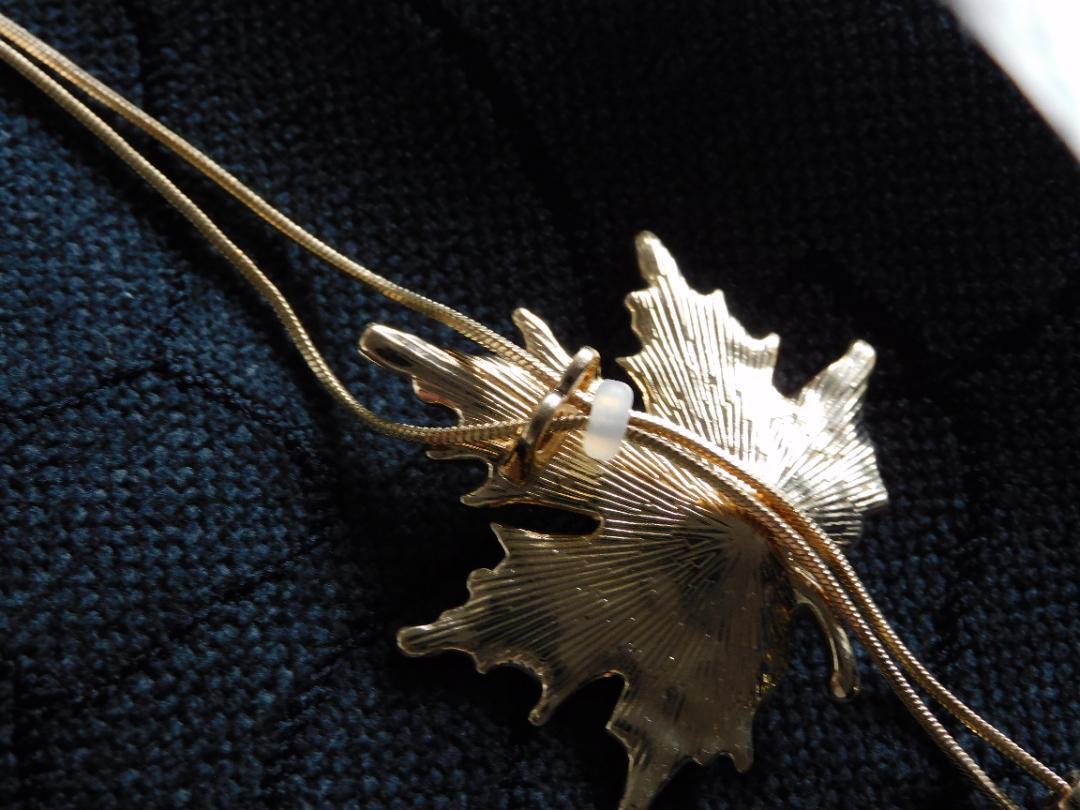 (2612) ゴールド 大人可愛いもみじ 紅葉 ロングネックレス 自由に長さ調整
