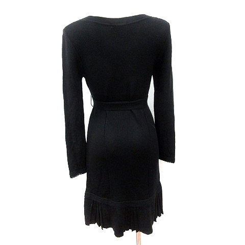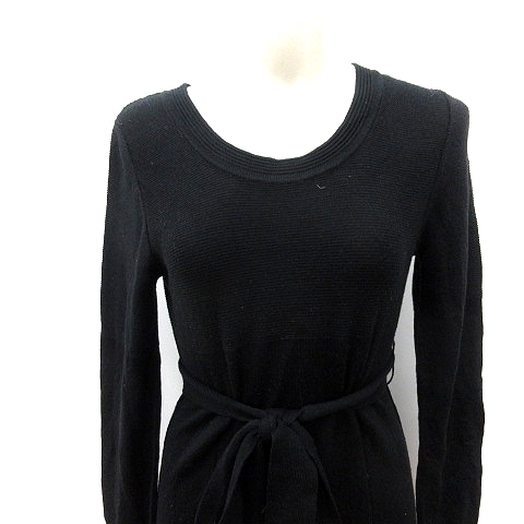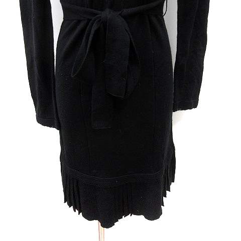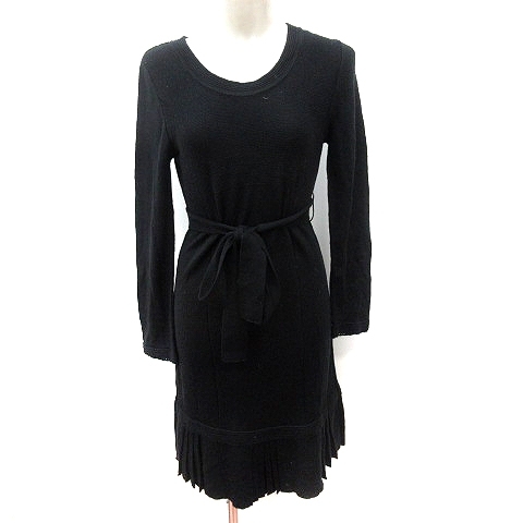 バーニーズニューヨーク BARNEYS NEW YORK ニット ワンピース ひざ丈 プリーツ 長袖 ウエストマーク M 黒 ブラック /AU レディース
