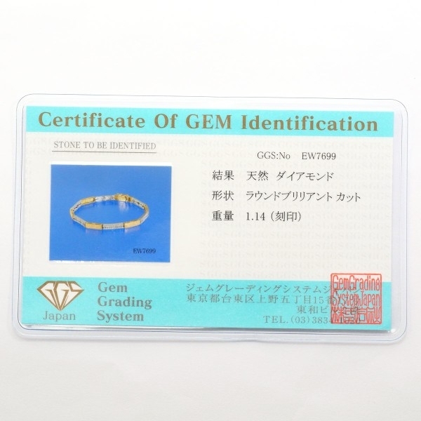 PT850 K18YG ブレスレット ダイヤ 1.14 カード鑑別書 総重量約16.8g 約17.5cm 中古 美品 送料無料 | |