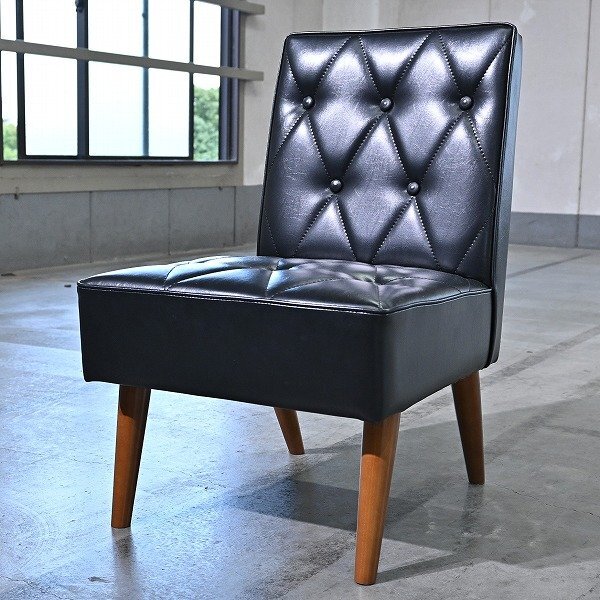 肘掛けのないコンパクトなサイズながらしっかりとした座り心地。