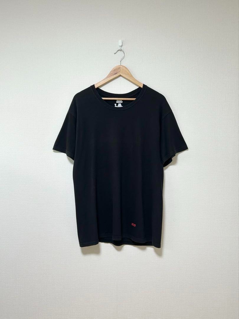 左裾にはミニボックスロゴがプリントされたシンプルな無地Tシャツです。